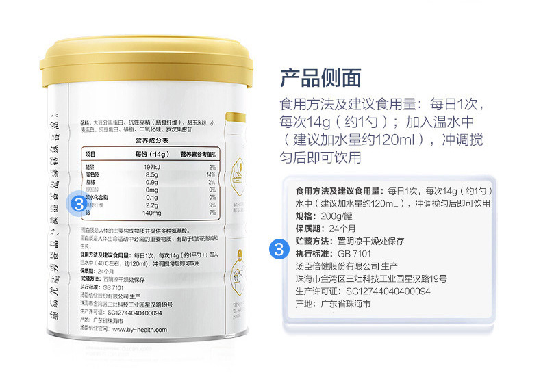 湯臣/倍健蛋白粉植物大豆エンドウ豆蛋白粉成人男女健康栄養公式純正品