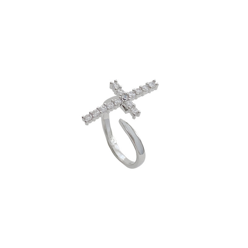 クロスボーダー新型クロスオープンリング男女同モデル日常着用ファッション銅象眼ジルコンリング