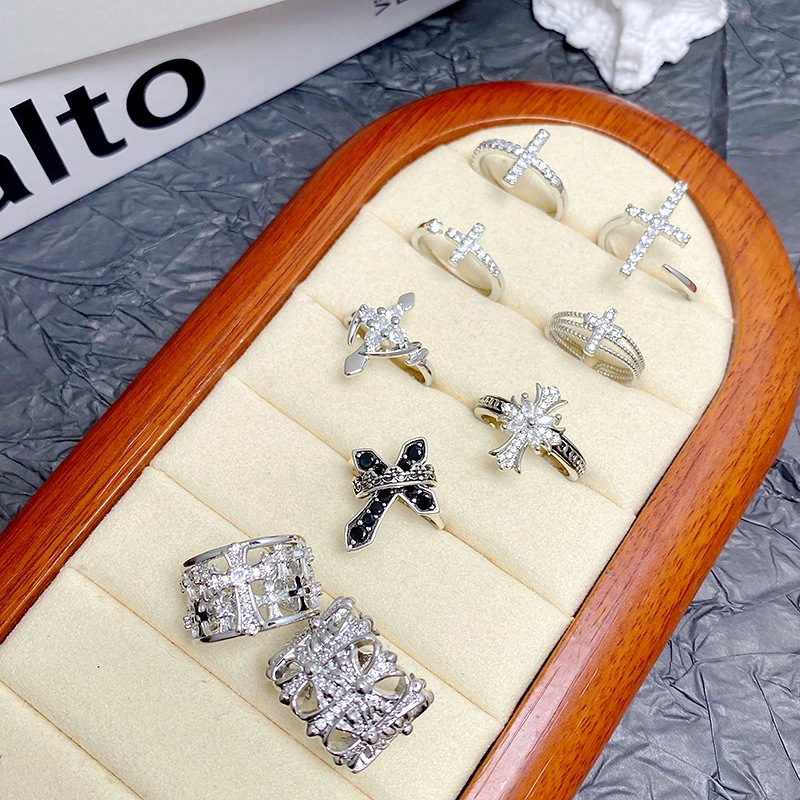 【十字绮章】跨境万圣节十字架锆石独特开口戒指个性高级感指环女
