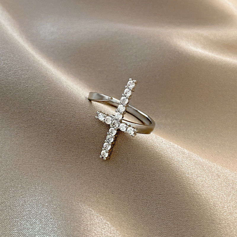 超フラッシュクロスの指輪の女性の個性の小さい大衆の高級感の軽い豪華な指輪のinsの冷たい風の人差し指の指輪