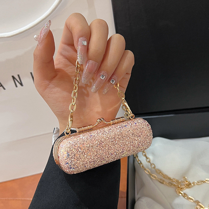 国境を越えた新しいファッションのキラキラした口紅のミニ装飾小包は、手を持って晩餐会のバッグにまたがっている
