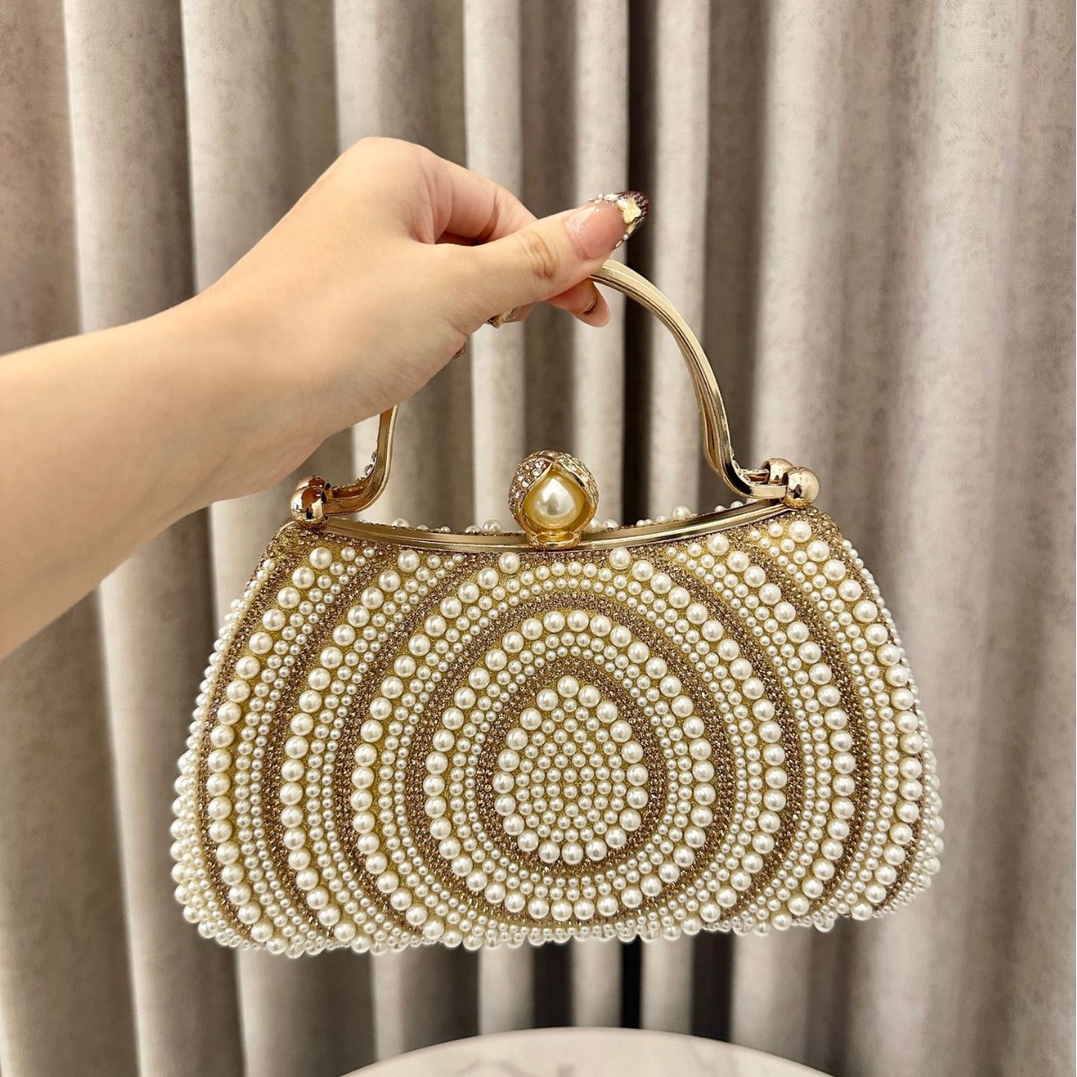 新款欧美女士珍珠晚宴包宴会礼服镶钻手提包单肩斜挎包手拿包钱包