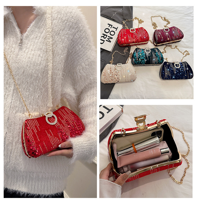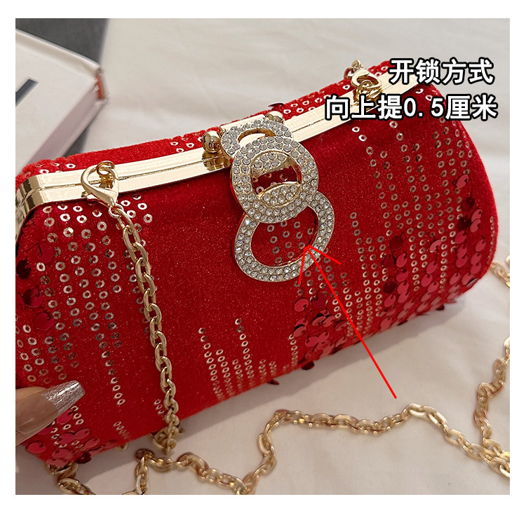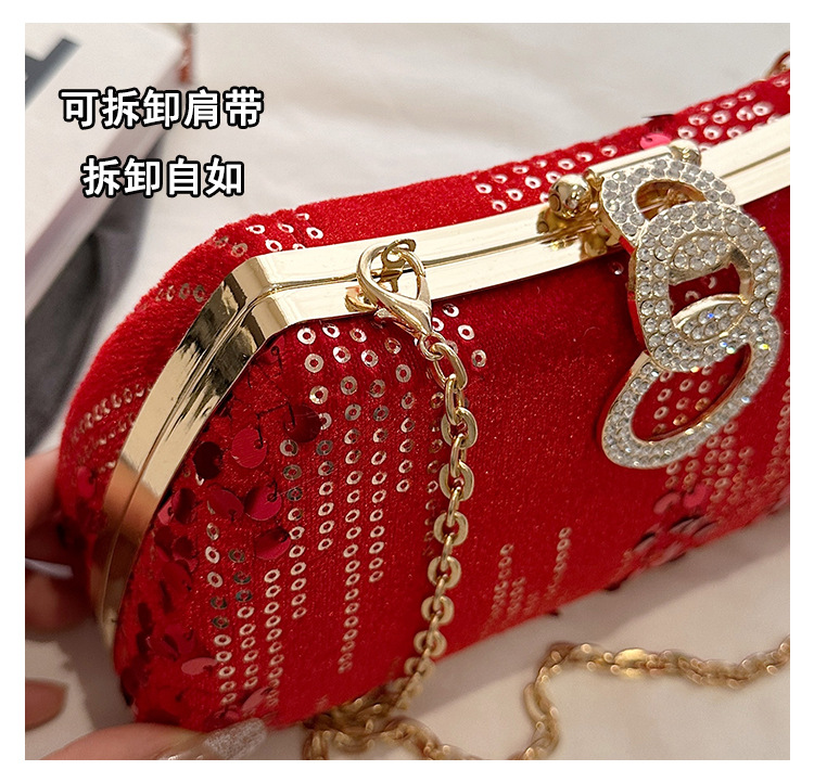 新款跨境外贸丝绒晚宴包名媛手拿包绒面斜跨派对包闪钻女包旗袍包