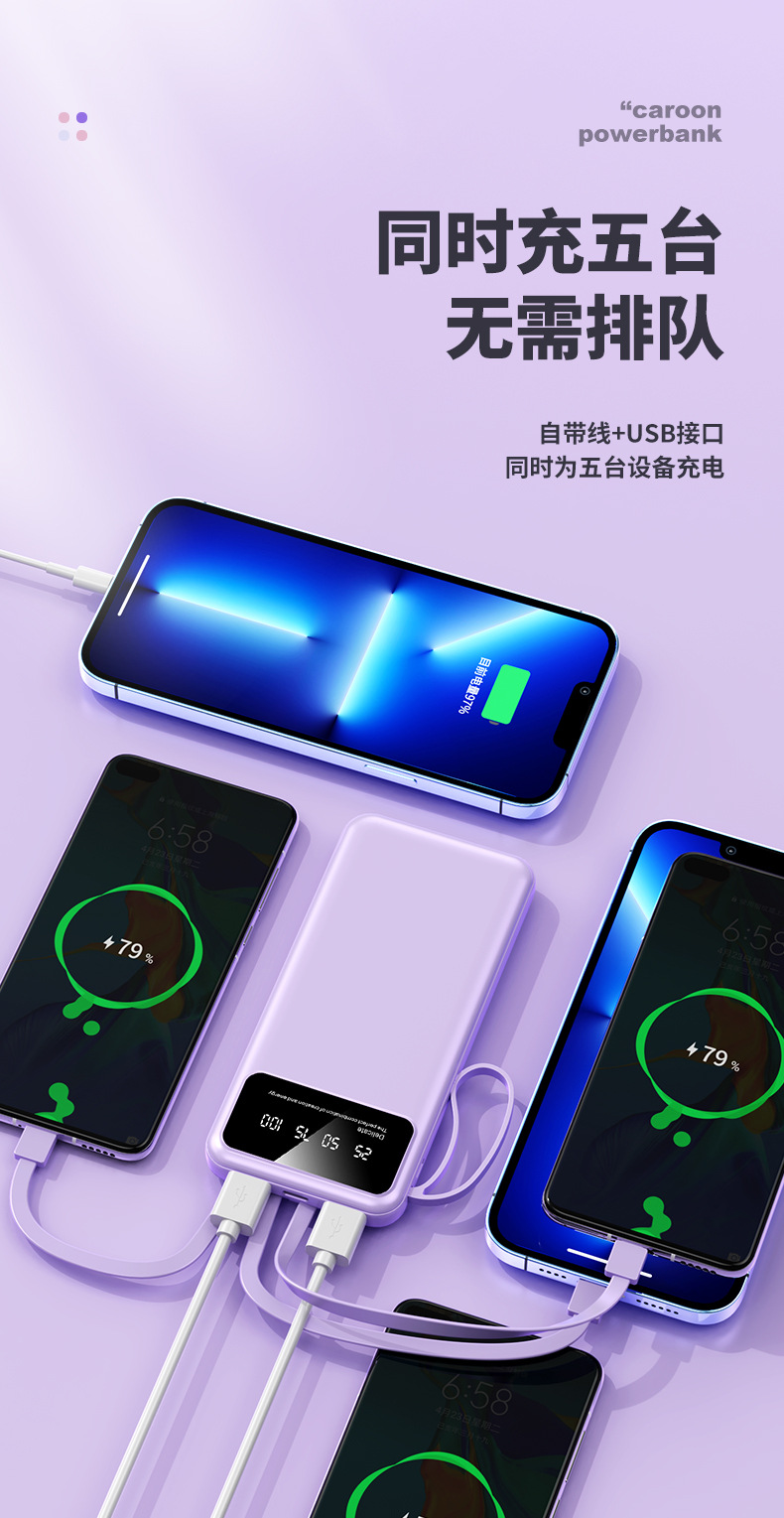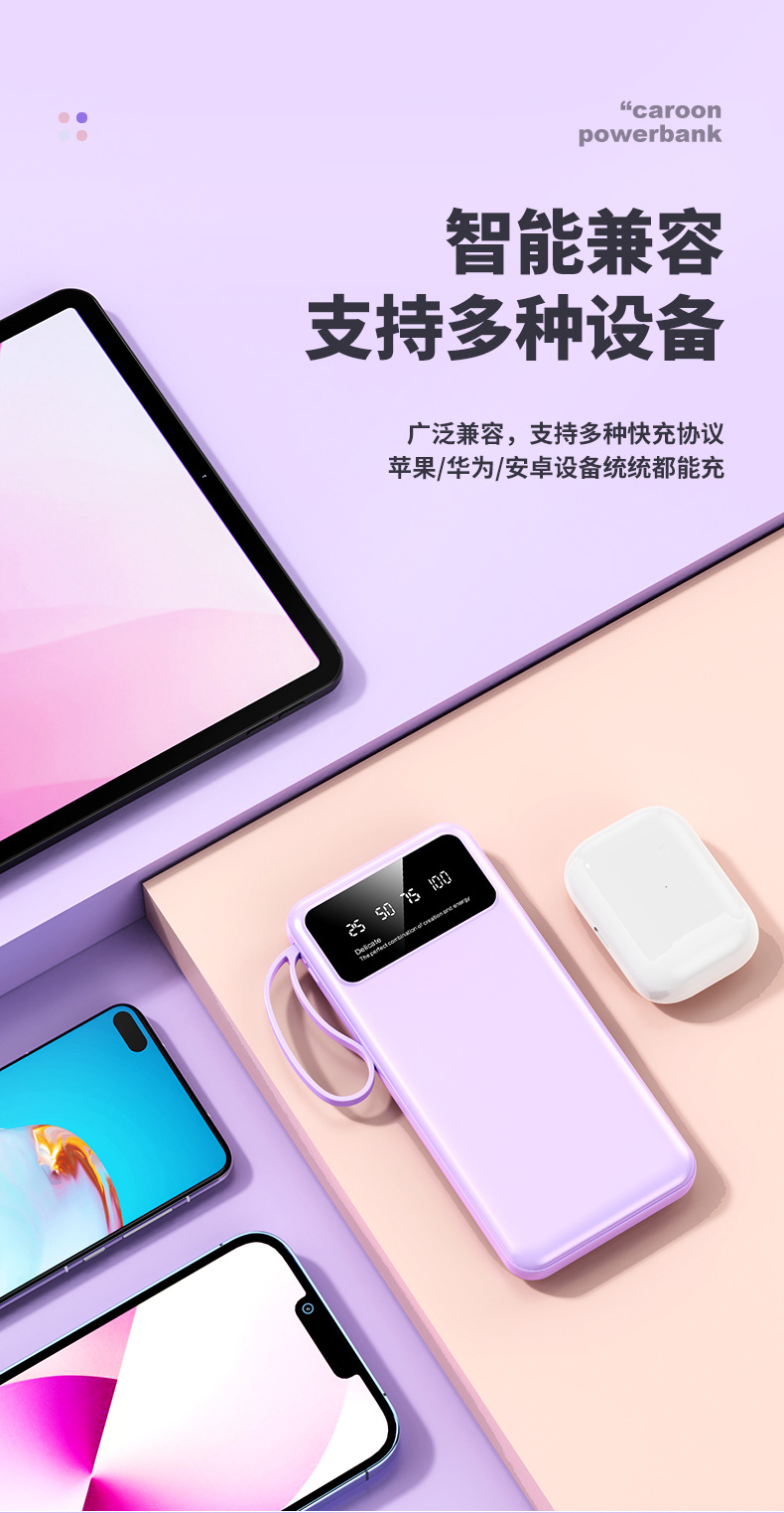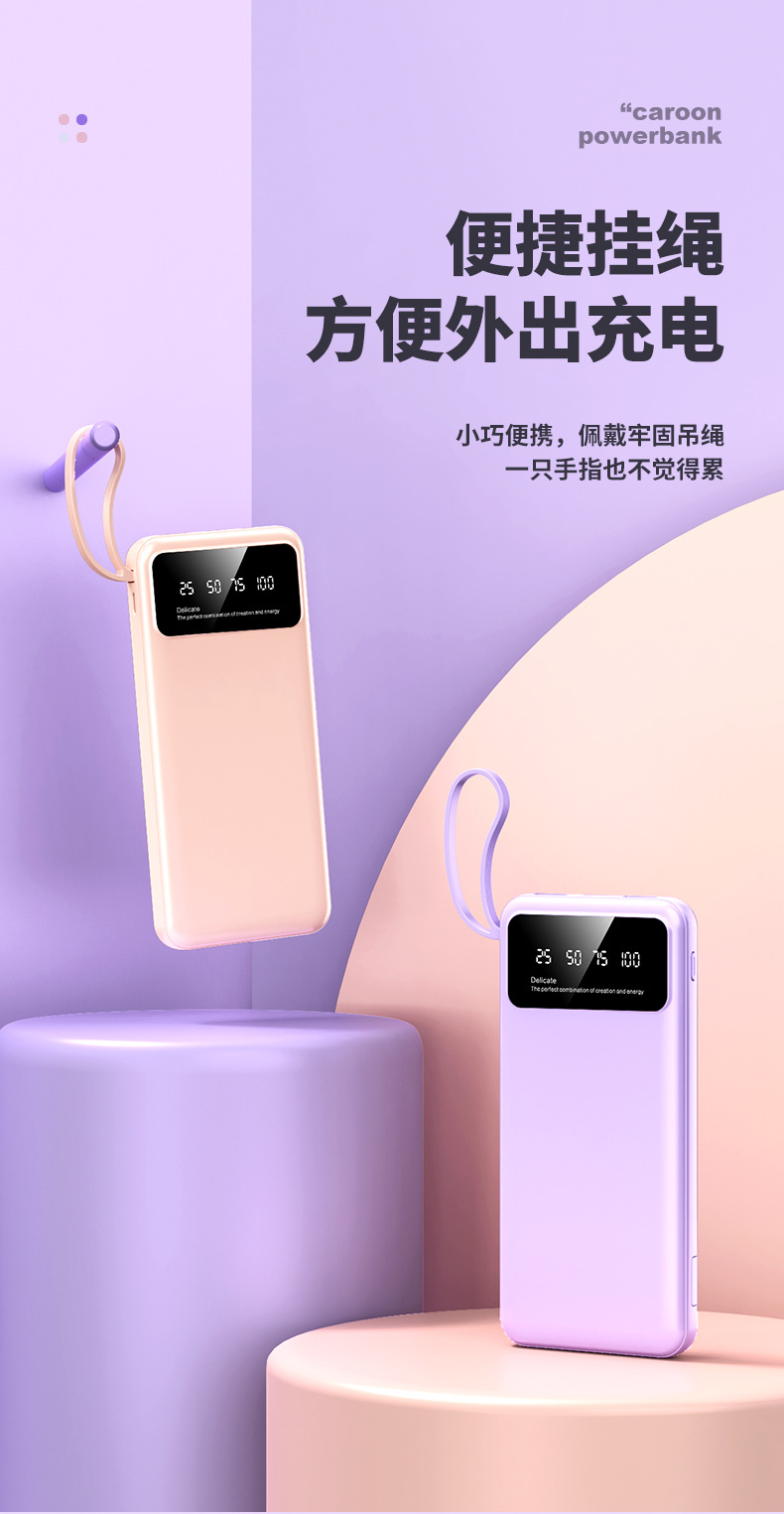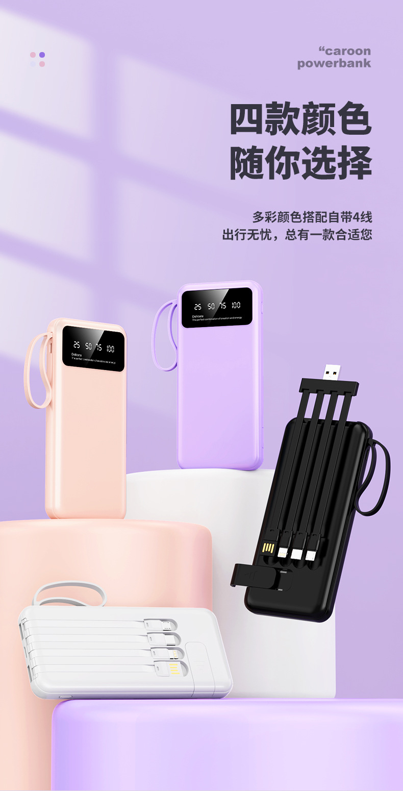 クロスボーダー卸売り自帯線充電宝20000ミリアンペア速充便利大容量移動電源プレゼント