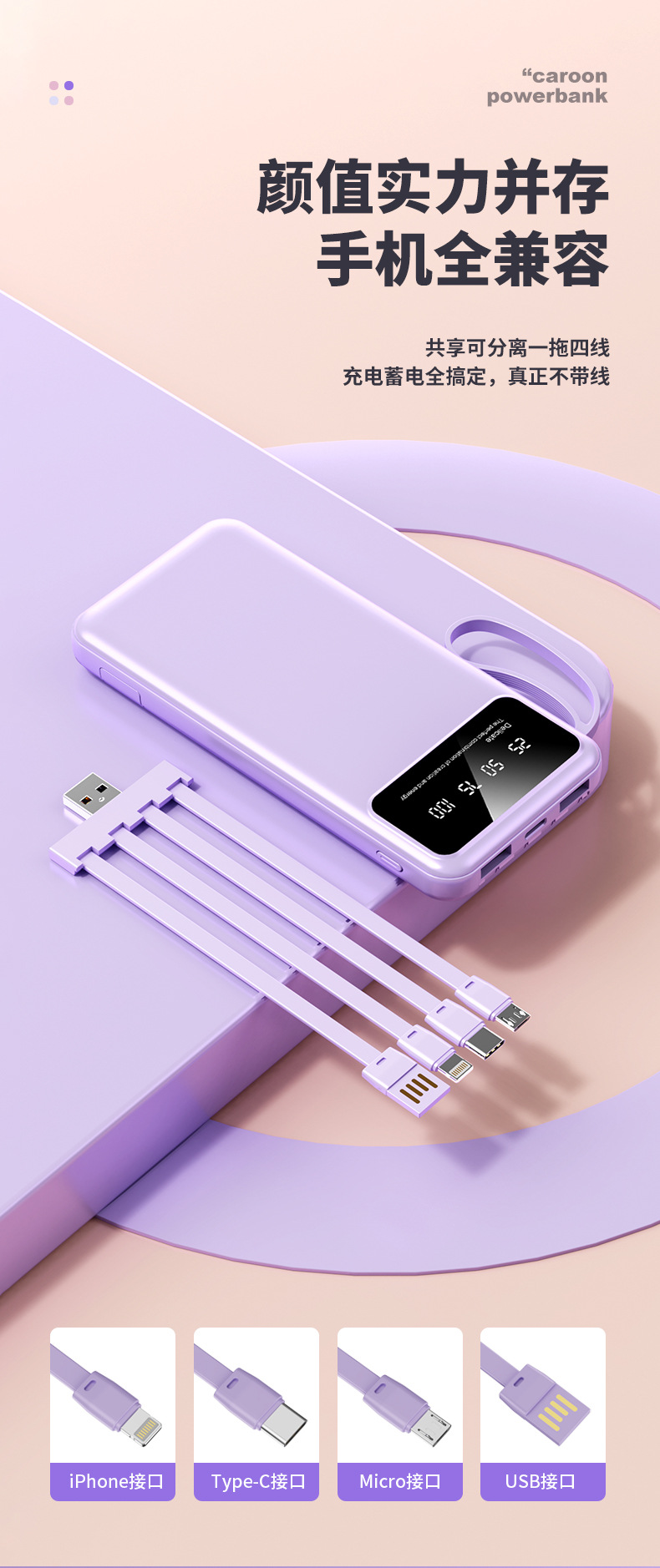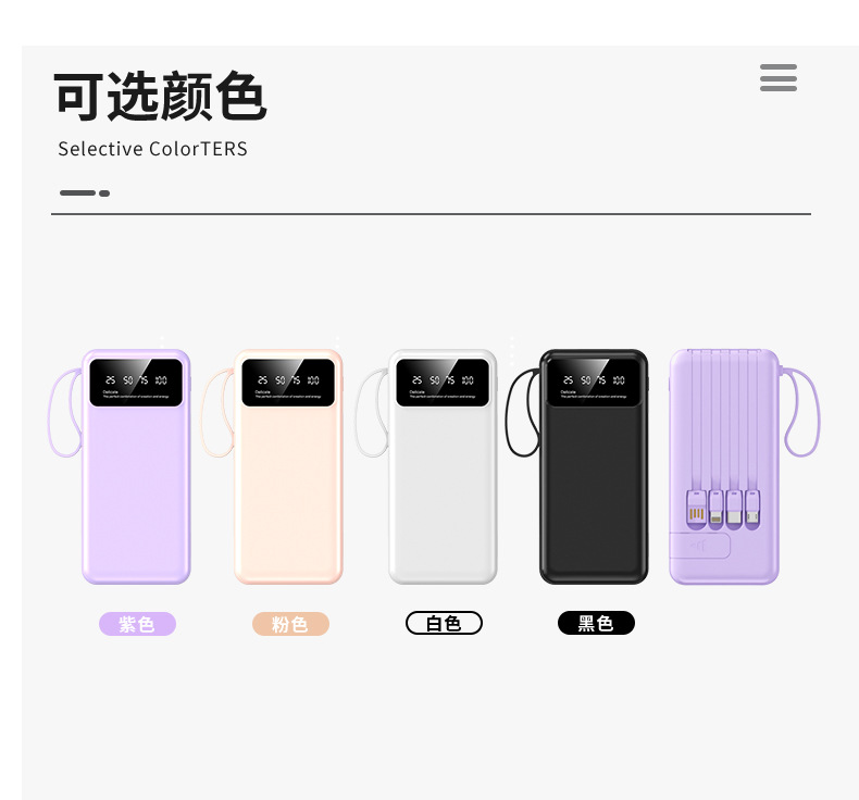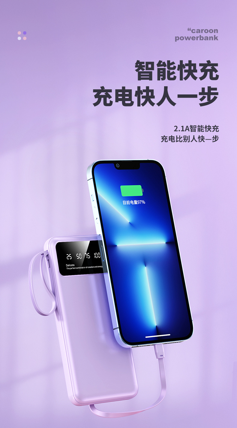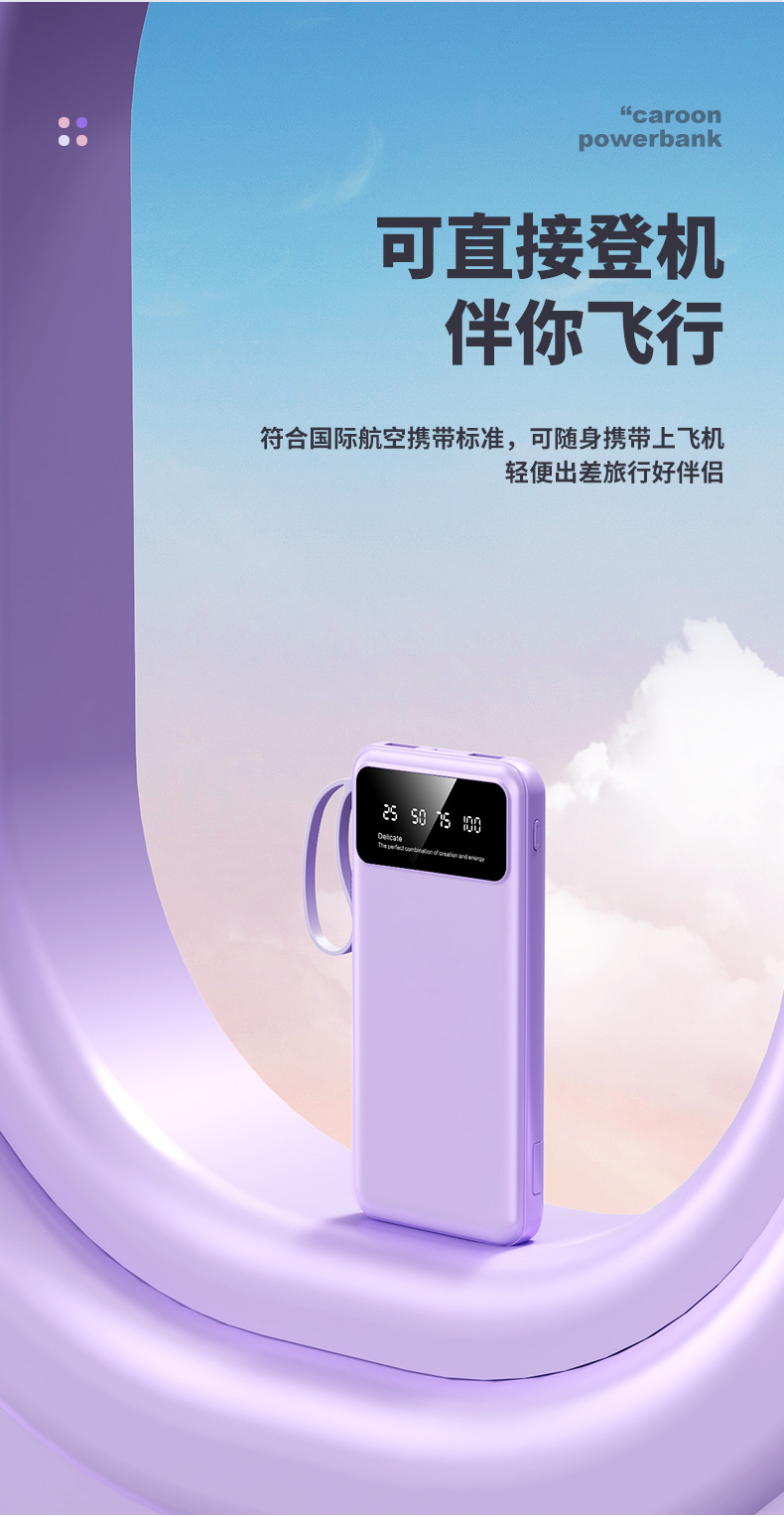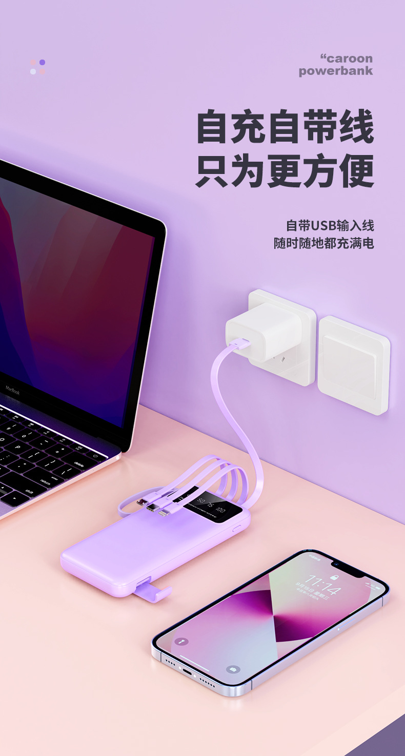 クロスボーダー卸売り自帯線充電宝20000ミリアンペア速充便利大容量移動電源プレゼント
