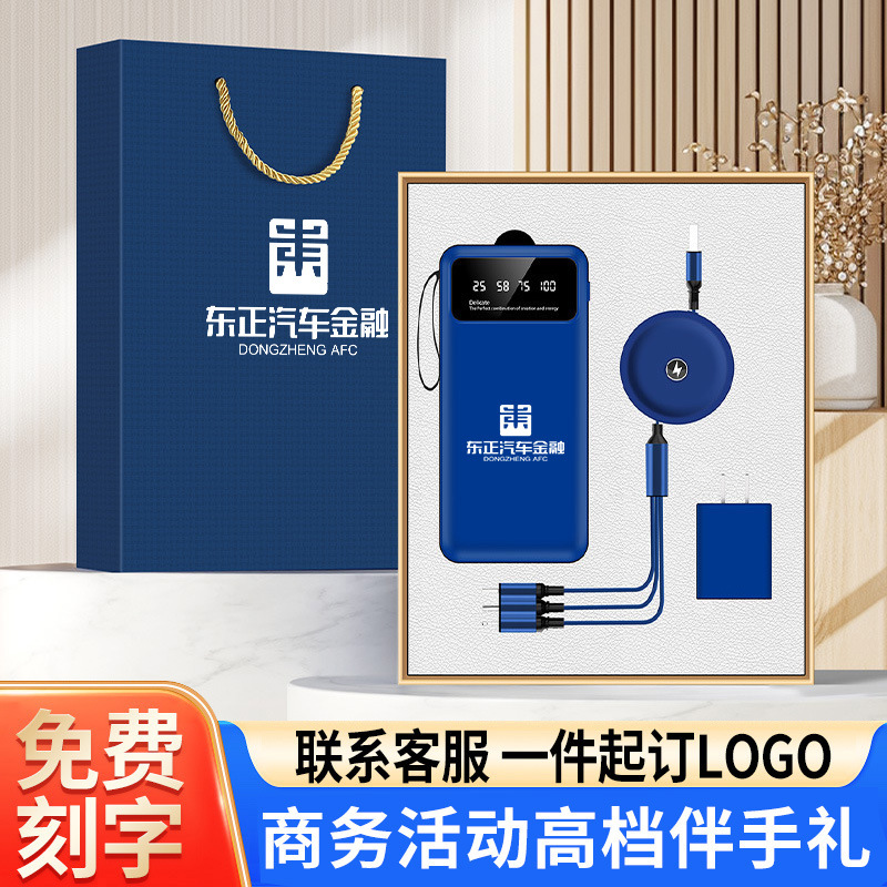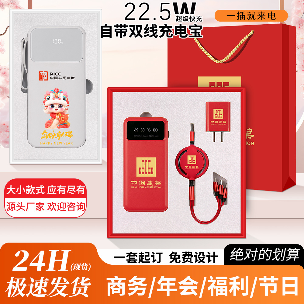 国潮自帯線充電宝セットプレゼント制定ロゴ彫刻会社年次総会活動移動電源ギフトボックス