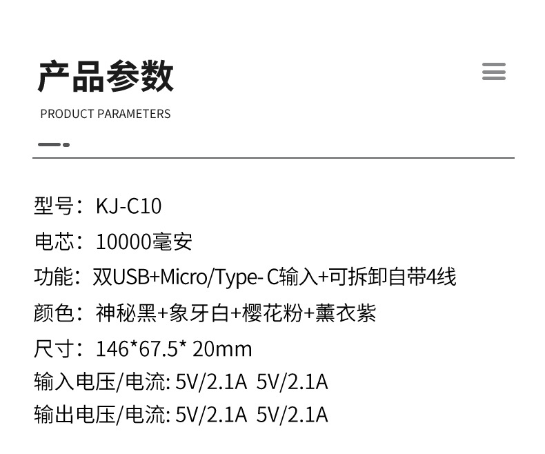 超薄金属磁吸无线充电宝带线户外快充10000毫安小巧便携移动电源