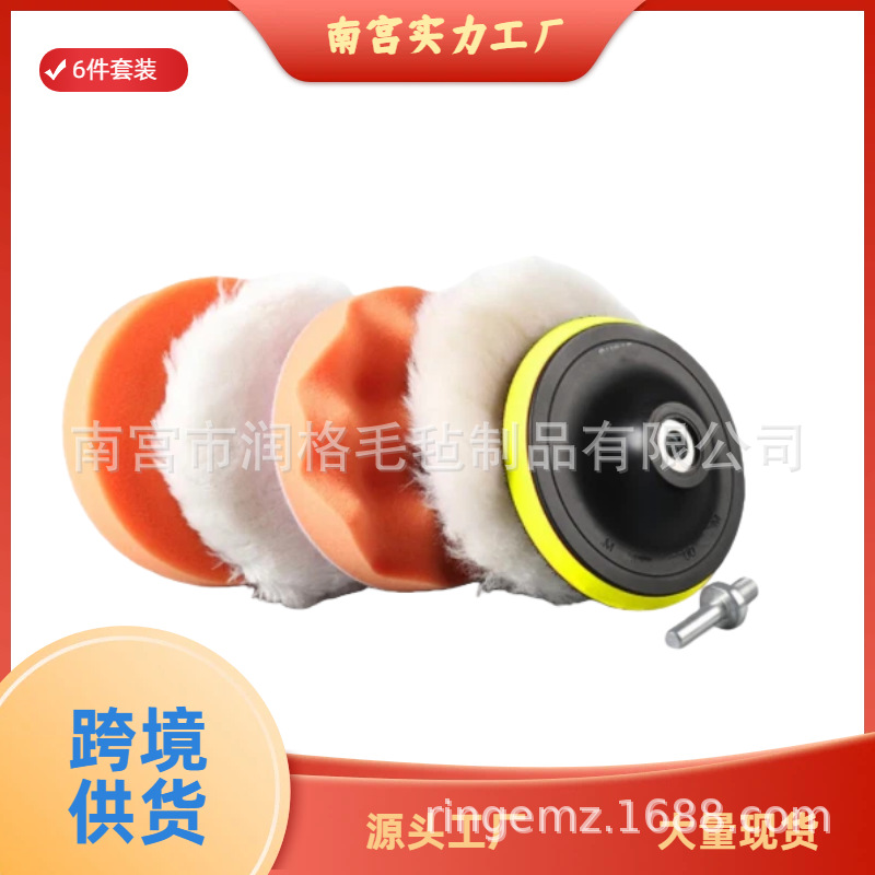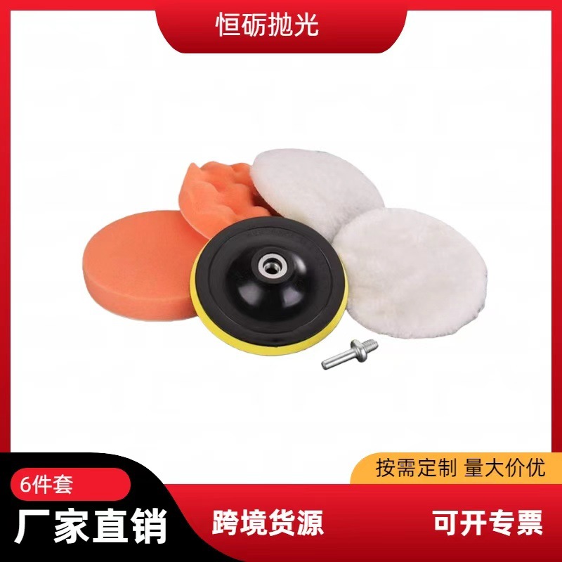 跨境批发6件套汽车美容抛光垫海绵工具抛光盘打蜡羊毛盘抛光轮抛