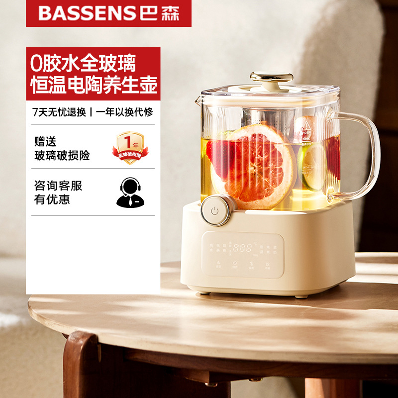 巴森小方炖全玻璃养生壶D7恒温家用多功能办公室小型电陶炉煮花茶