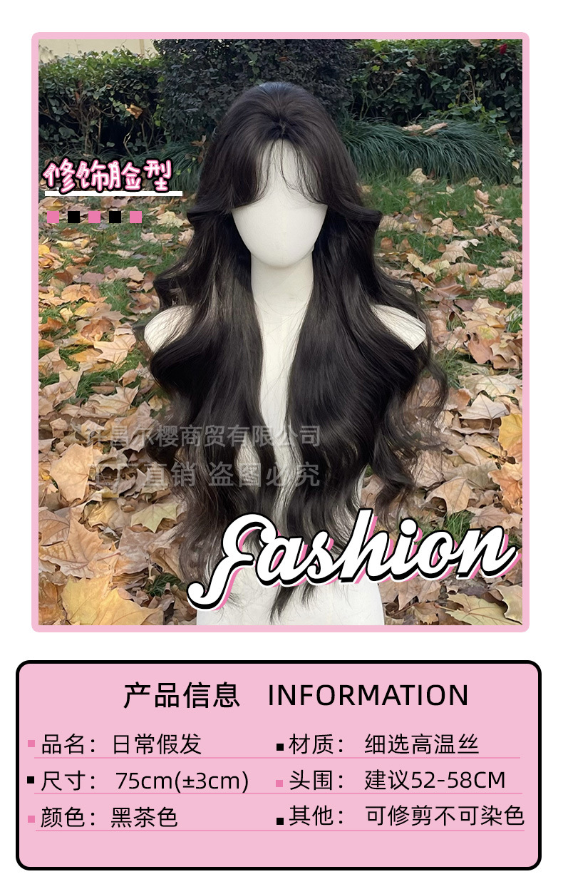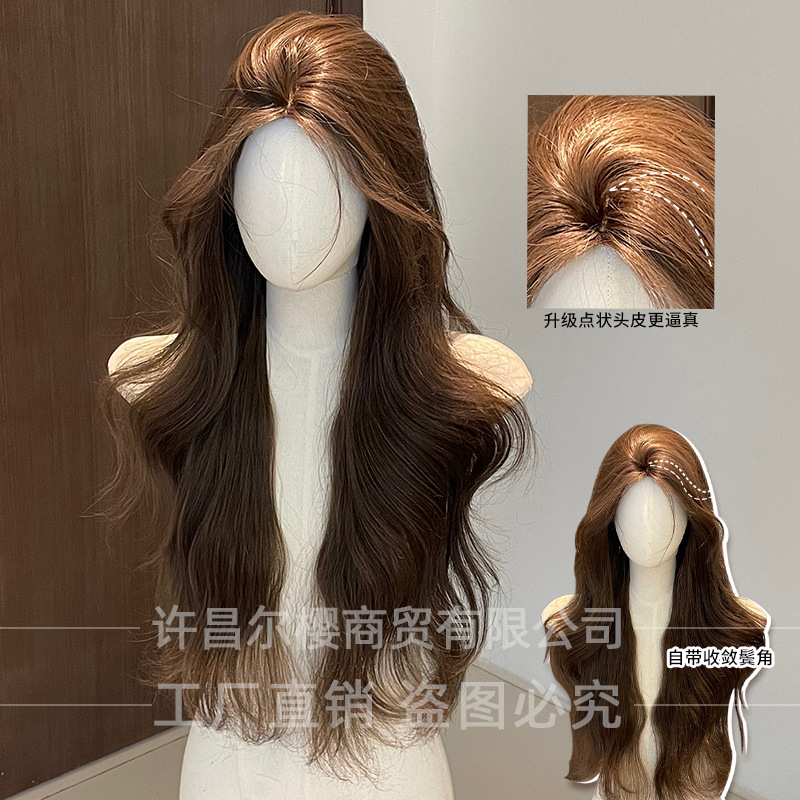桜のかつら冬の新型女性は自然にリアルな前髪橘茶色のロングストレートの丸い顔をしています。