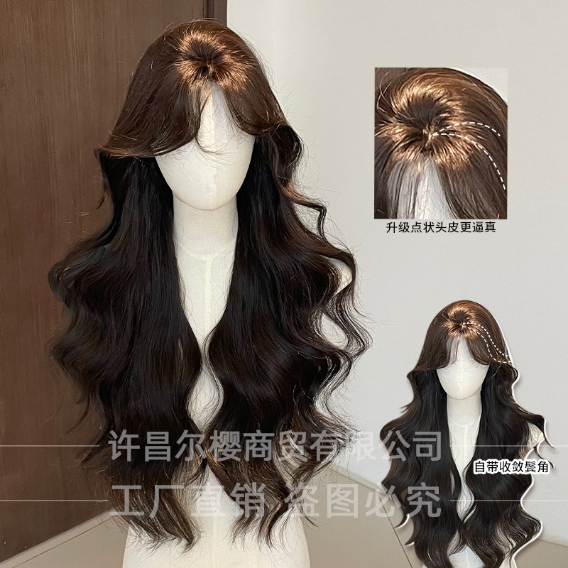 桜のかつらの女性ネットの赤い日の常長のカールの夏の新型の韓系の甘くて迫真的な劉海jkの全体のカバー