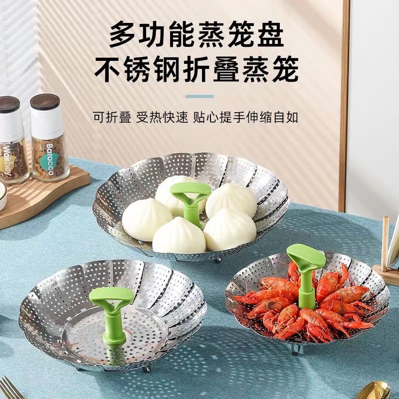起爆ステンレス折り畳み蒸し器多機能蒸しマントー餃子蒸し器蓮花伸縮蒸し器ろ過皿