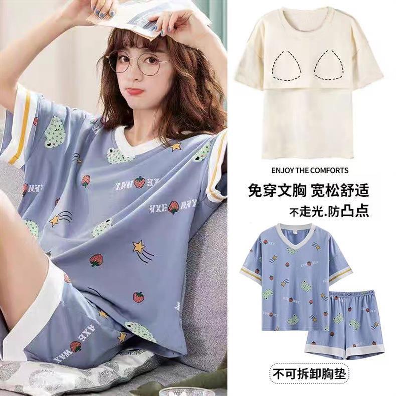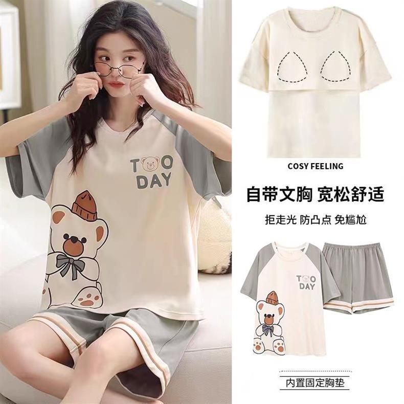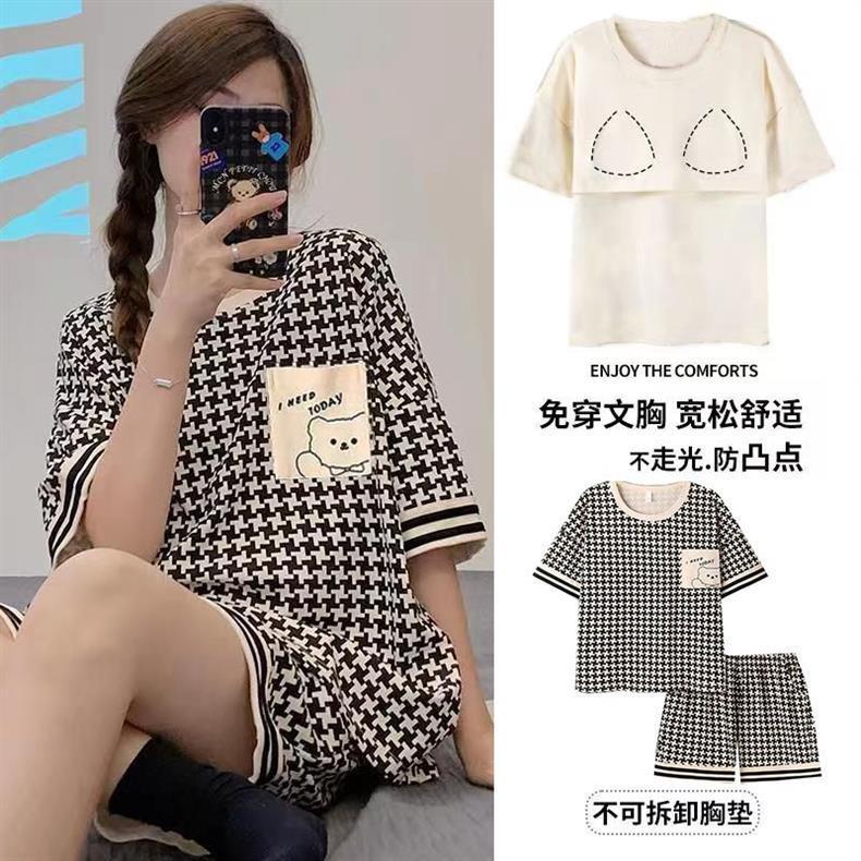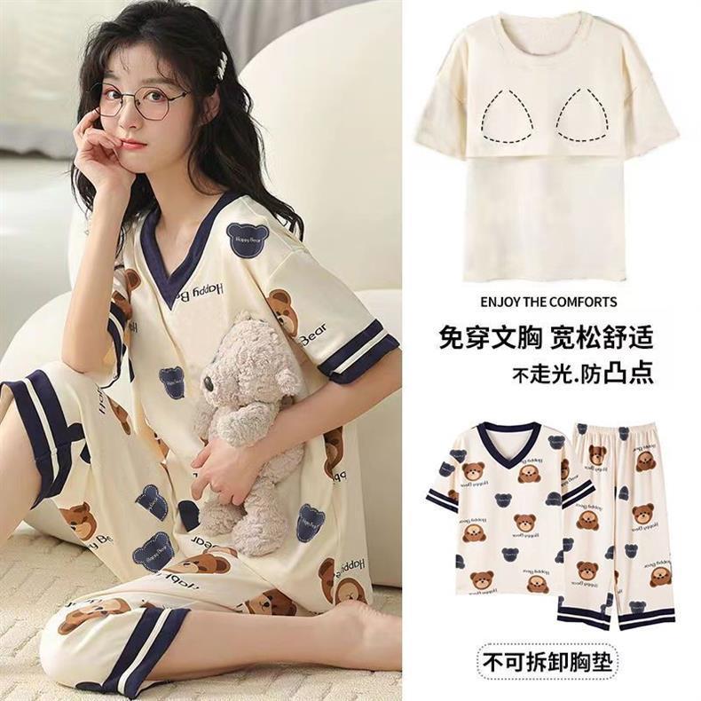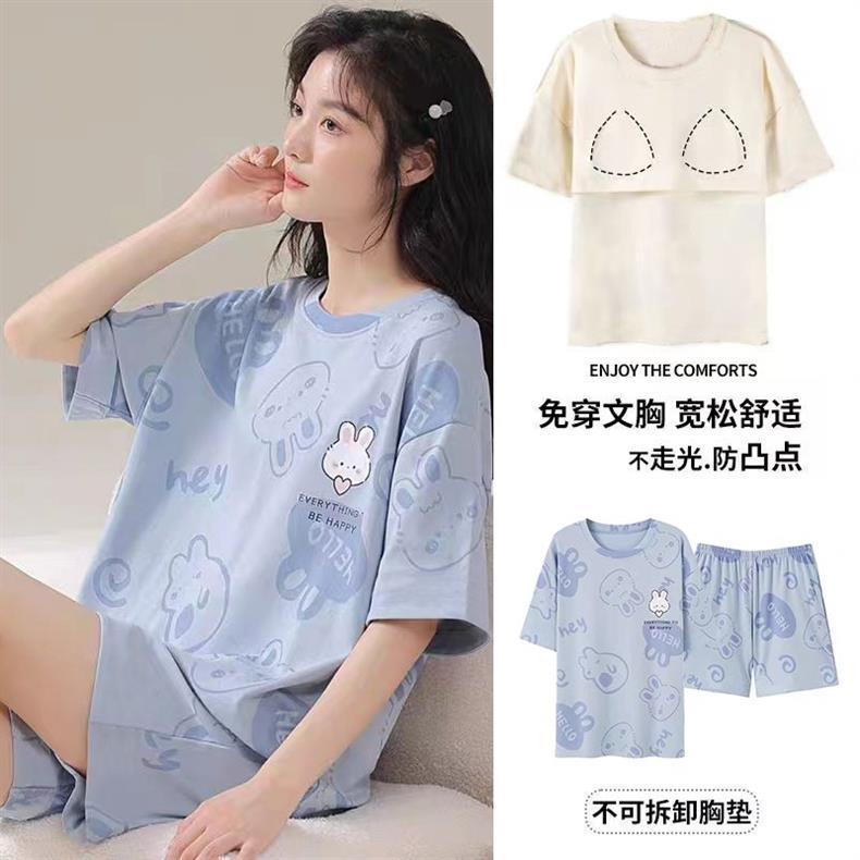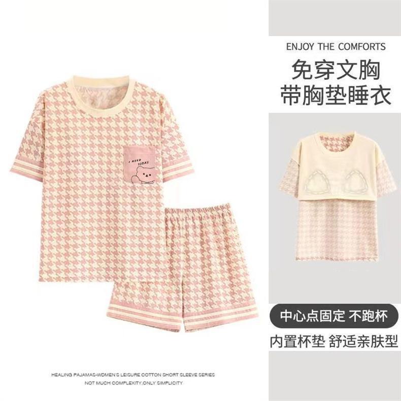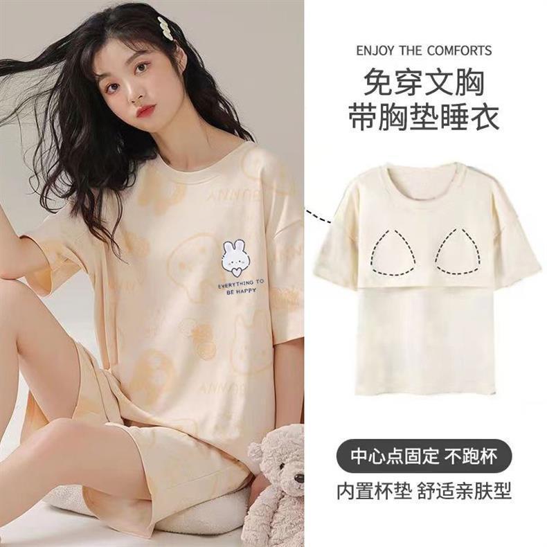 胸パッド付きパジャマ レディース 夏 純綿 半袖 夏春秋 2025年新作 ホームウェア 外出着としても着用可能