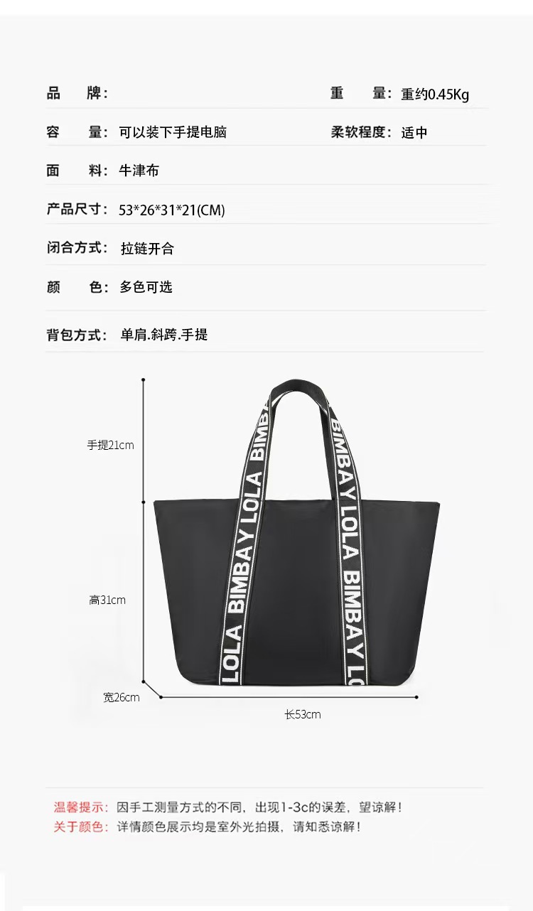クロスボーダースペインBIMBAYLOLAビバローラレディース大容量防水ハンドバッグトートバッグショッピングバッグ