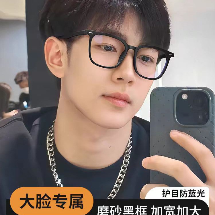 大顔専用フロスト黒色大枠高颜値近視眼鏡男防ブルーレイ抗放射平光鏡新製品