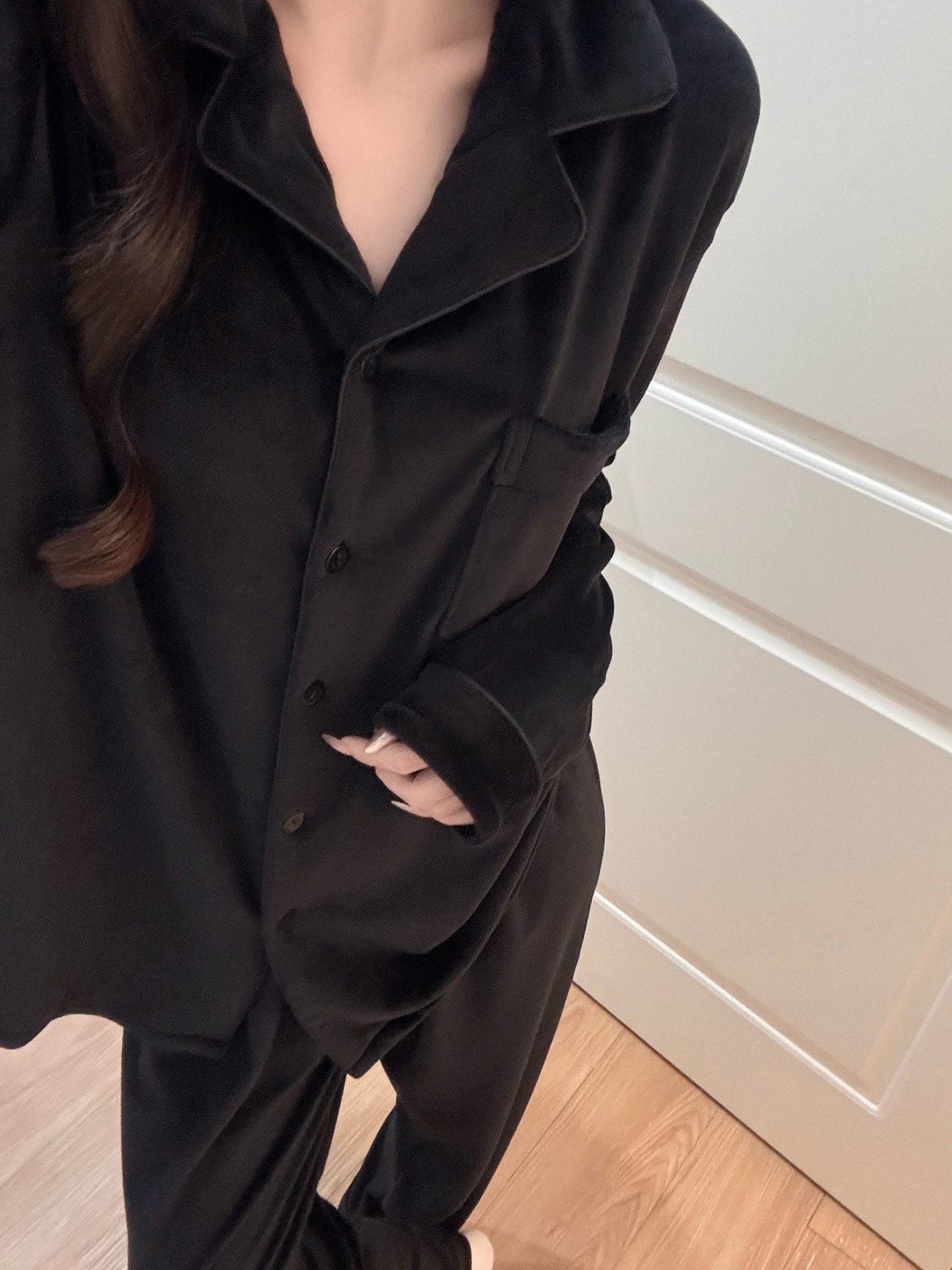加厚双面海岛绒睡衣女冬季新款纯色开衫家居服套装