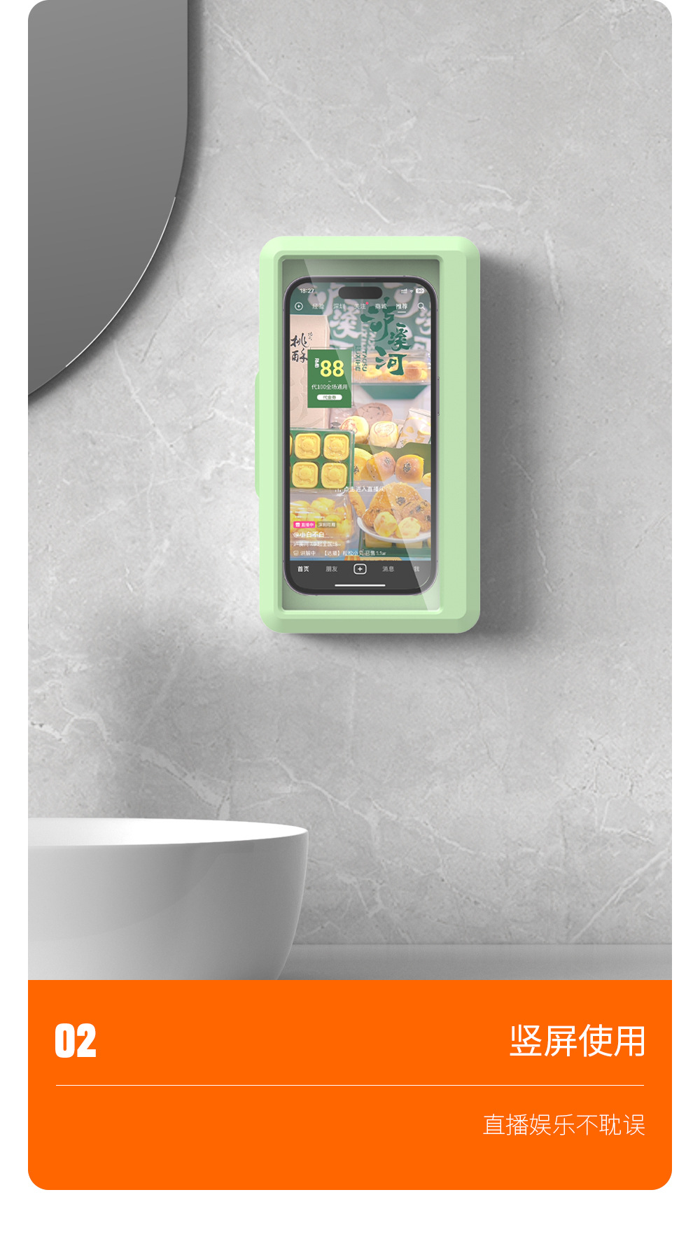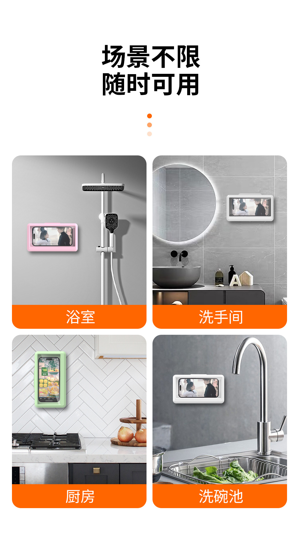 浴室防水防霧携帯ケース穴なし壁掛け携帯スタンド追劇神器回転可能キッチン防水ケース