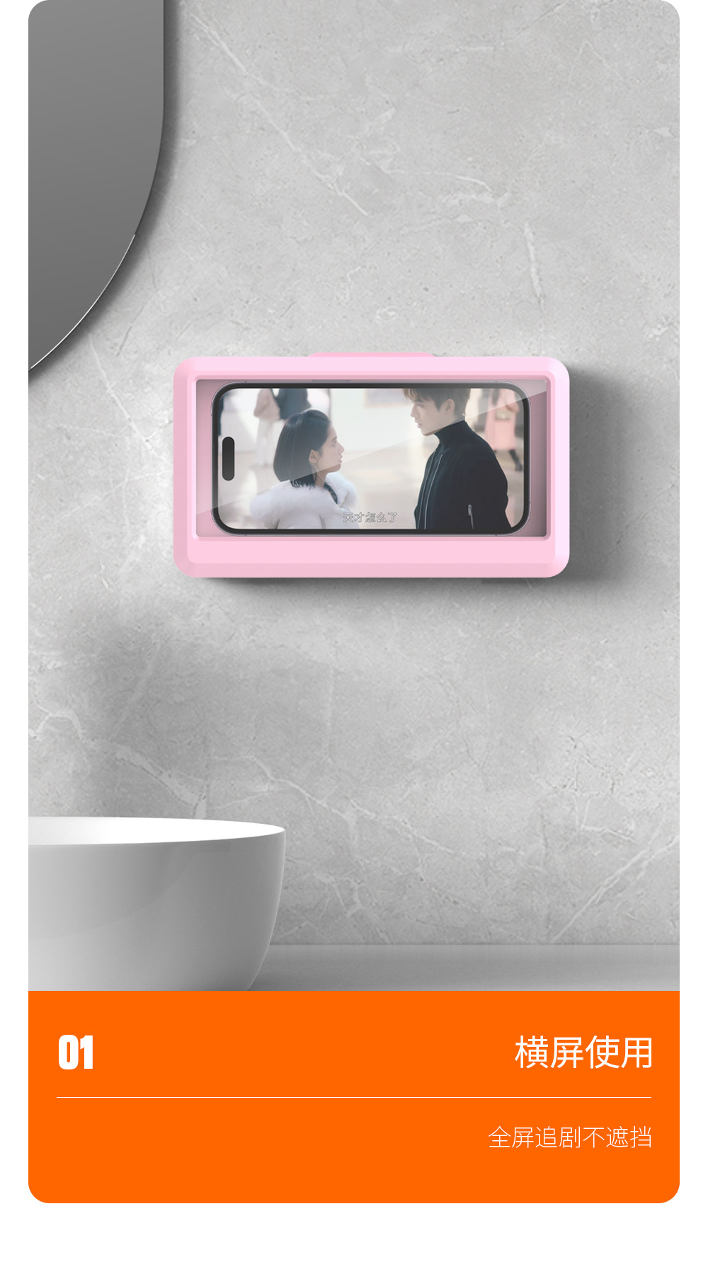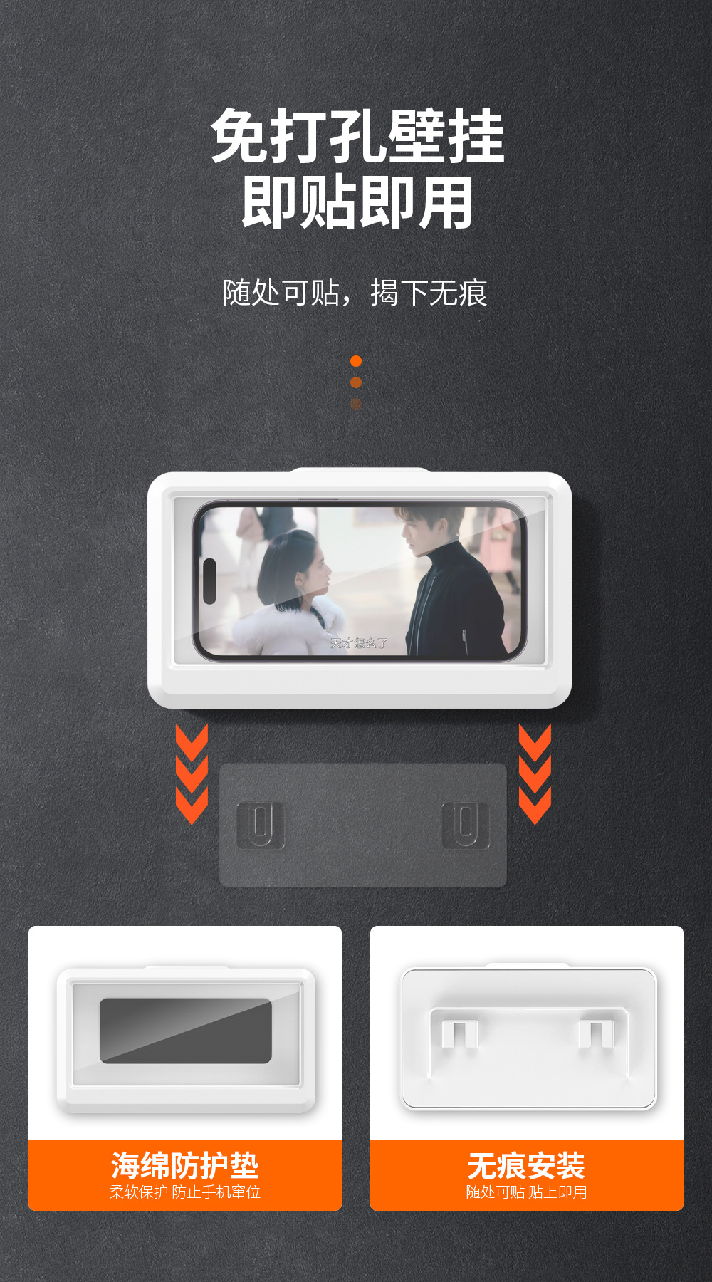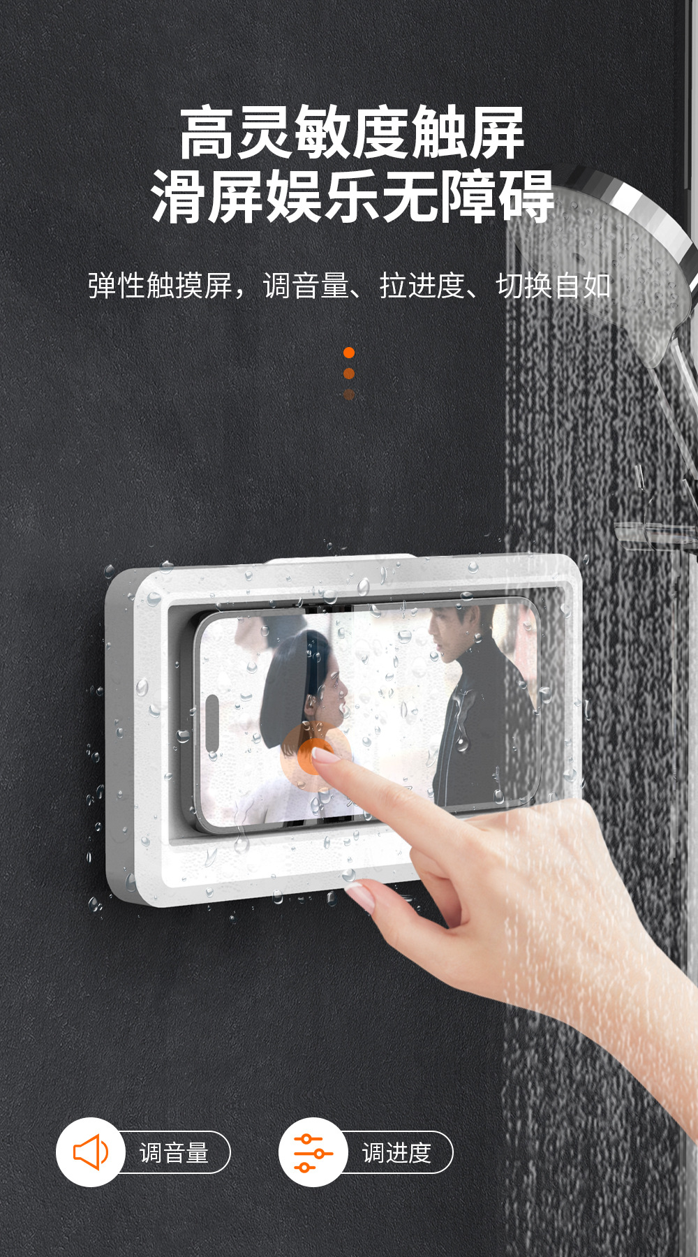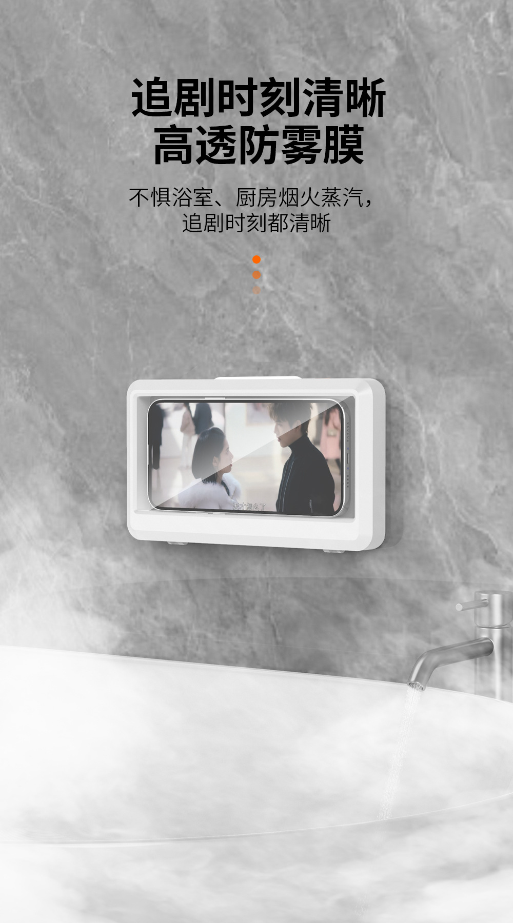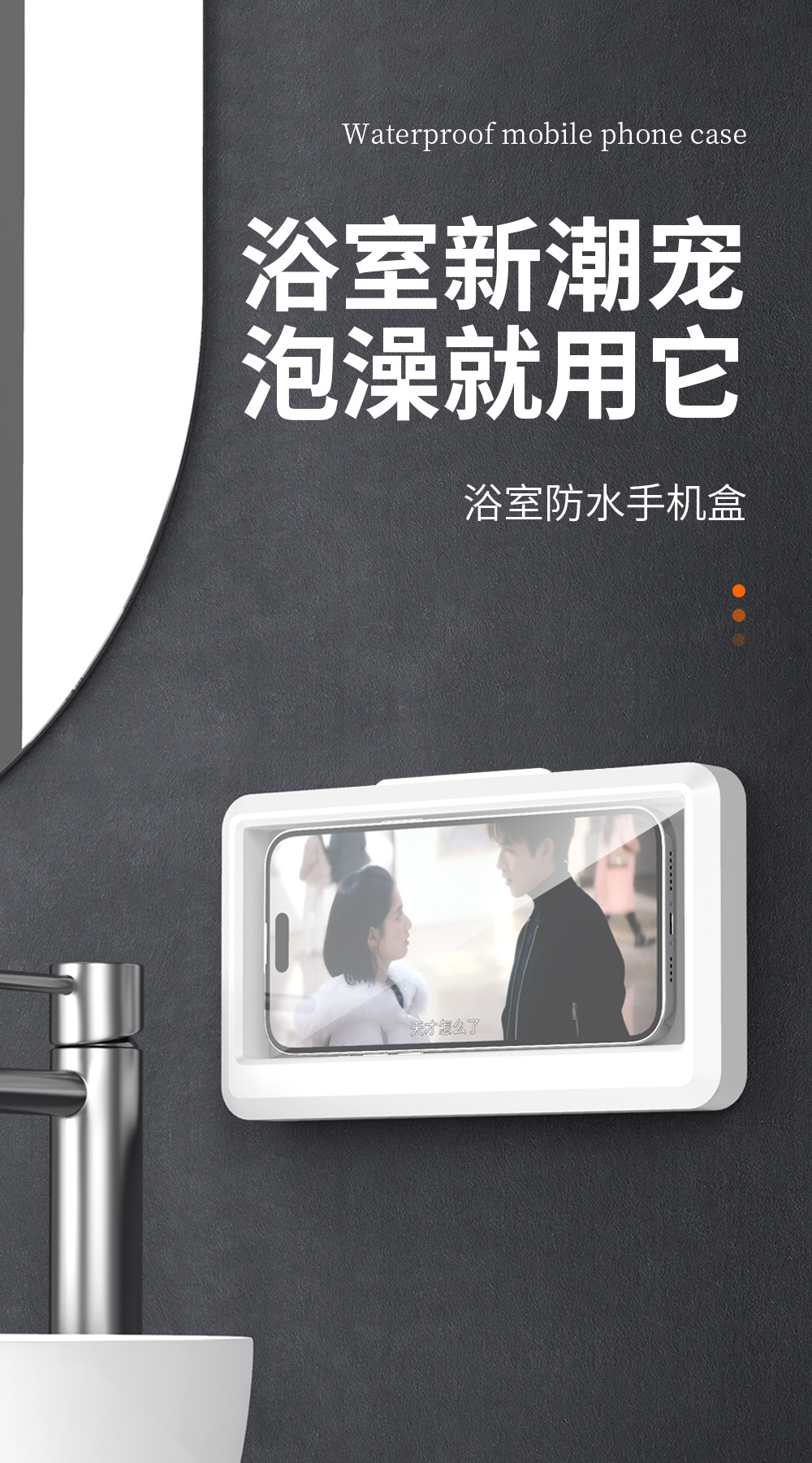 クロスボーダー携帯電話ホルダーバスルーム収納ボックスパンチングなし壁掛けタッチスクリーン防水防曇キッチンバスルームビデオ