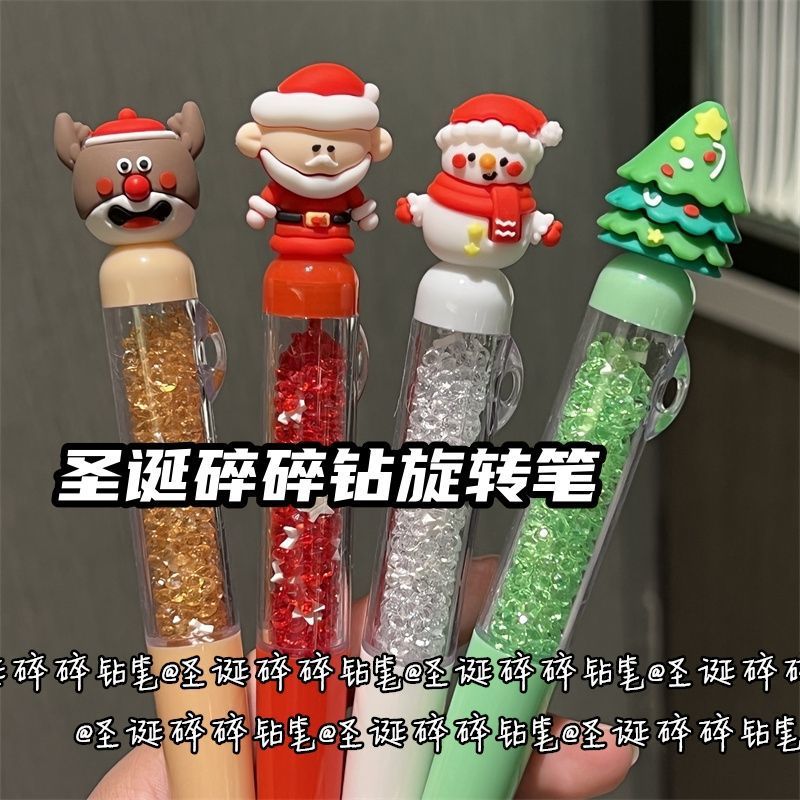 圣诞老人碎钻旋转中性笔圣诞树学生高颜值黑色写字笔圣诞套装笔