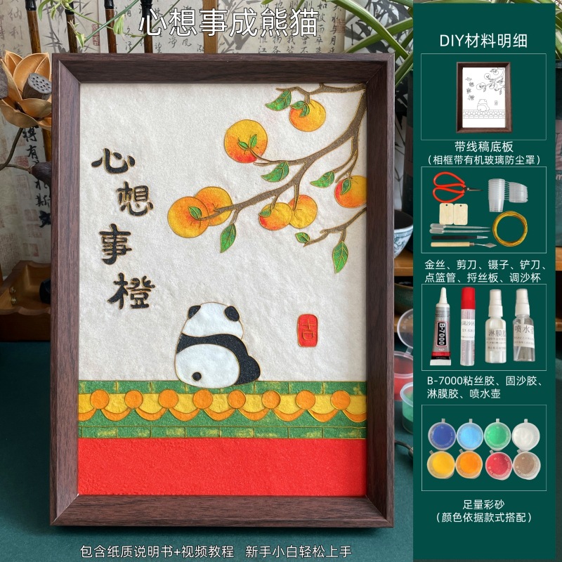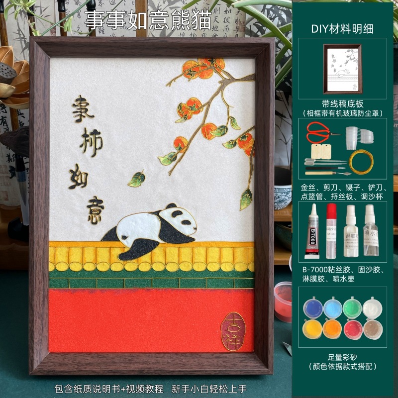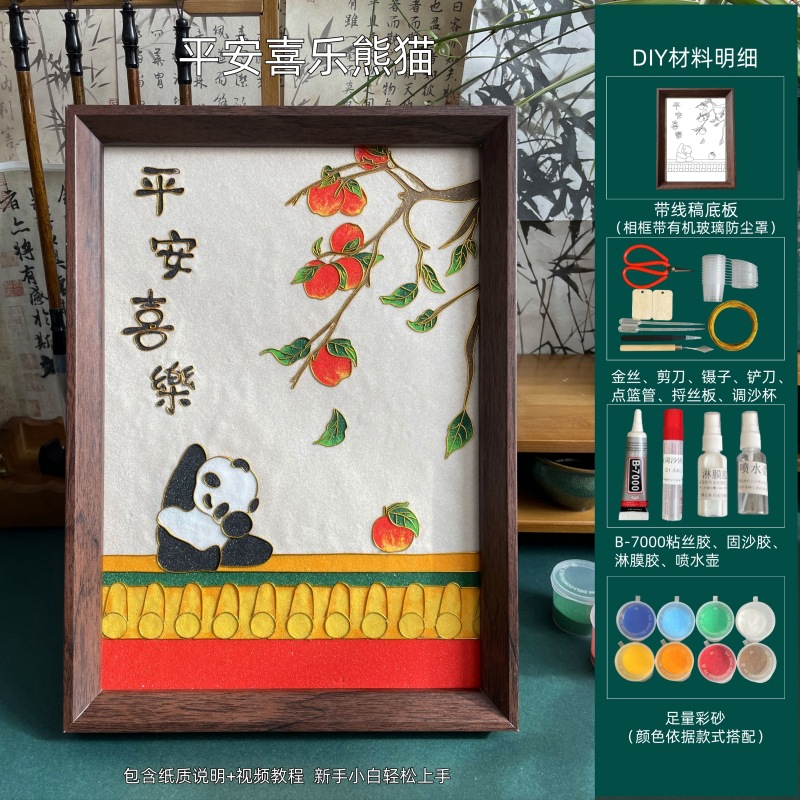 金糸砂画120目手作りエナメル画diy彩砂材料包非遺手景泰藍画