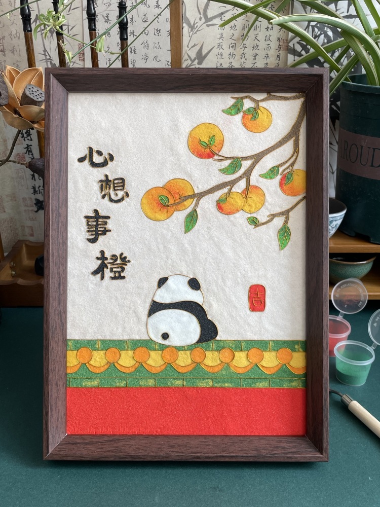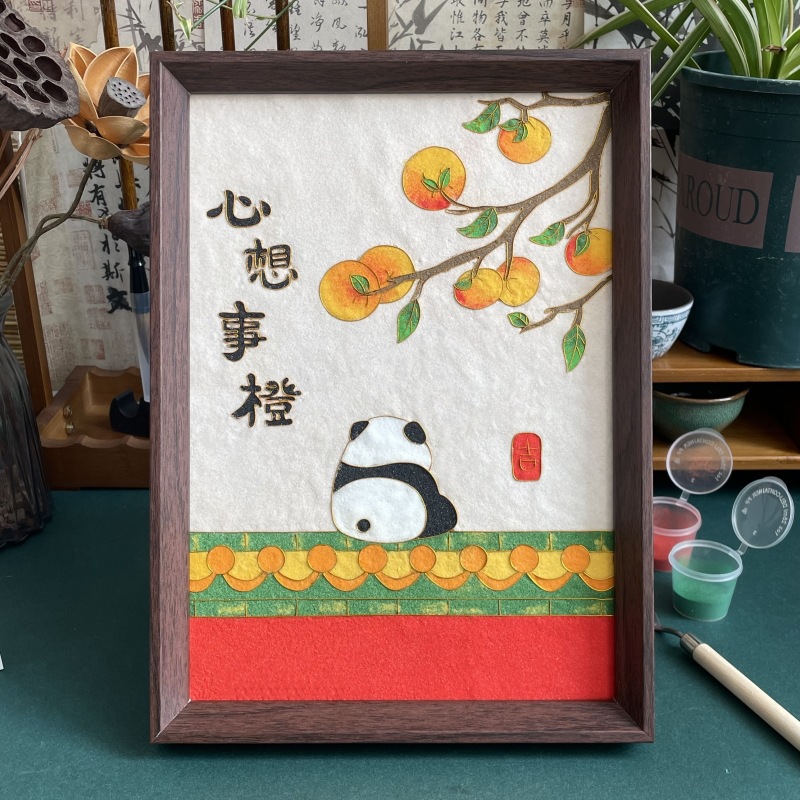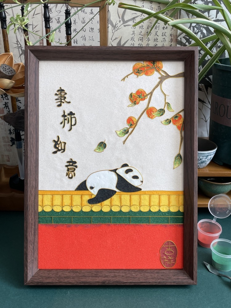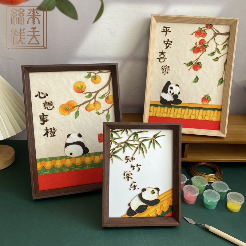 オリジナル作品故宮パンダはエナメル画diy材料包創意非遺品手作りフォトフレームを飾っています。