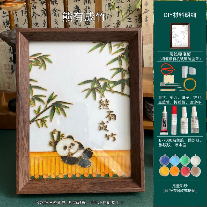 糸を絞めたエナメル画初心者専門道具diyセット金糸彩砂画非遺品手作り景泰青材料