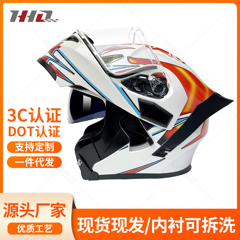メーカー 3c 認定オートバイヘルメット男性と女性のためのオールシーズンダブルミラーヘルメットオートバイ大型テールフルヘルメット卸売