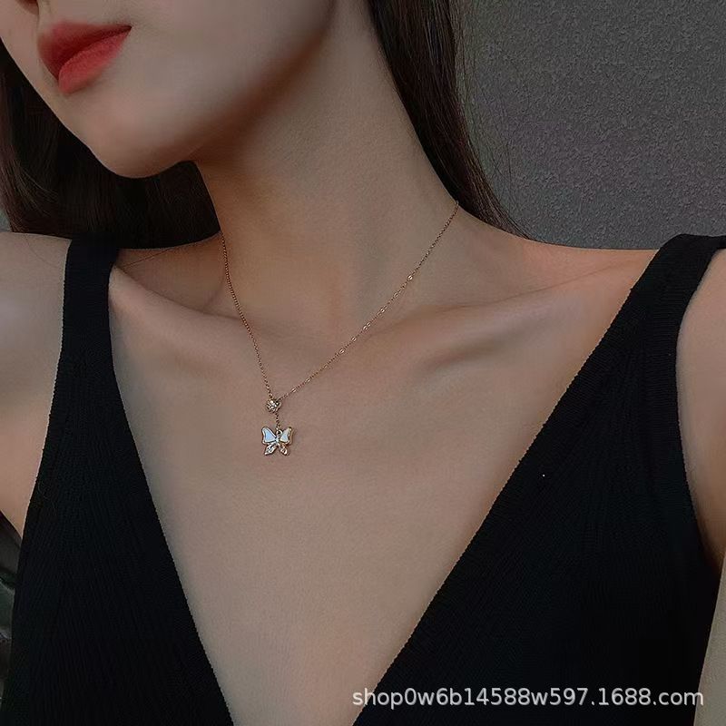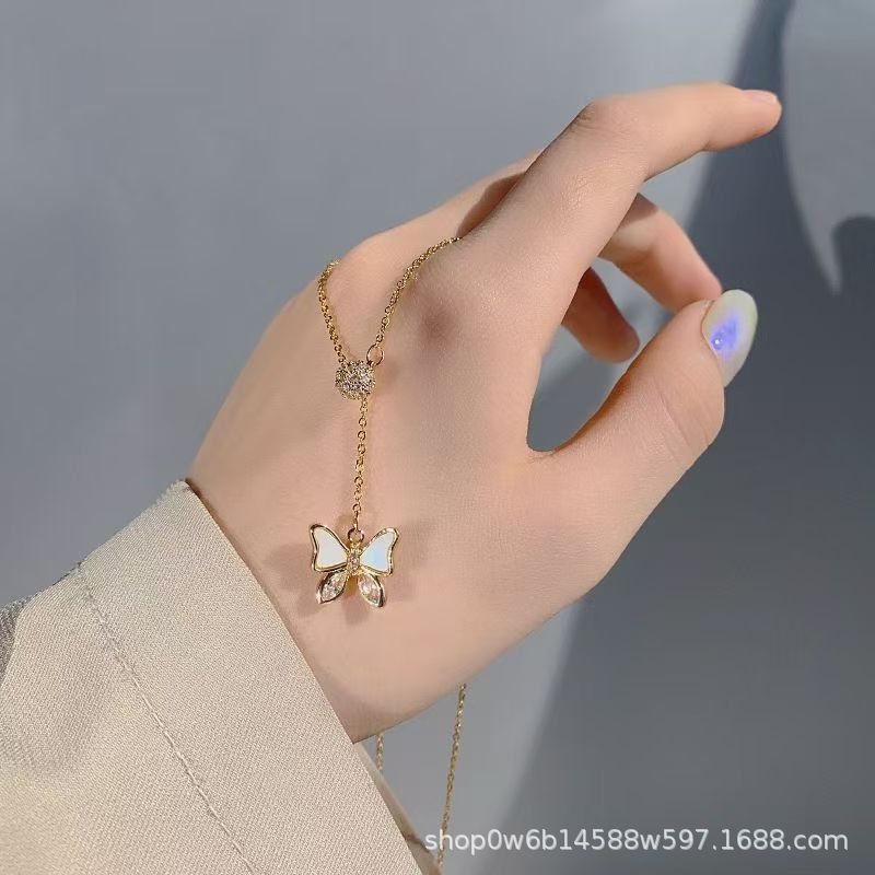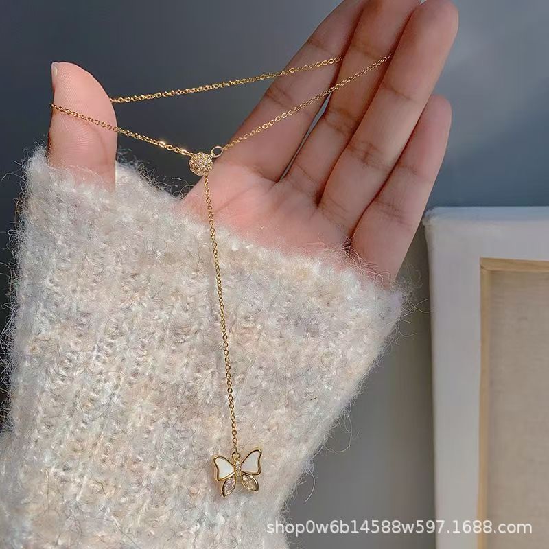 新款母贝蝴蝶锆石金色贝壳项链锁骨链女简约大方网红颈链厂家批发