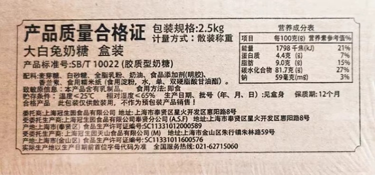 上海冠生園大白兎原味キャラメル227gばら積喜糖ハロウィーンプレゼントキャンディー礼箱スナック
