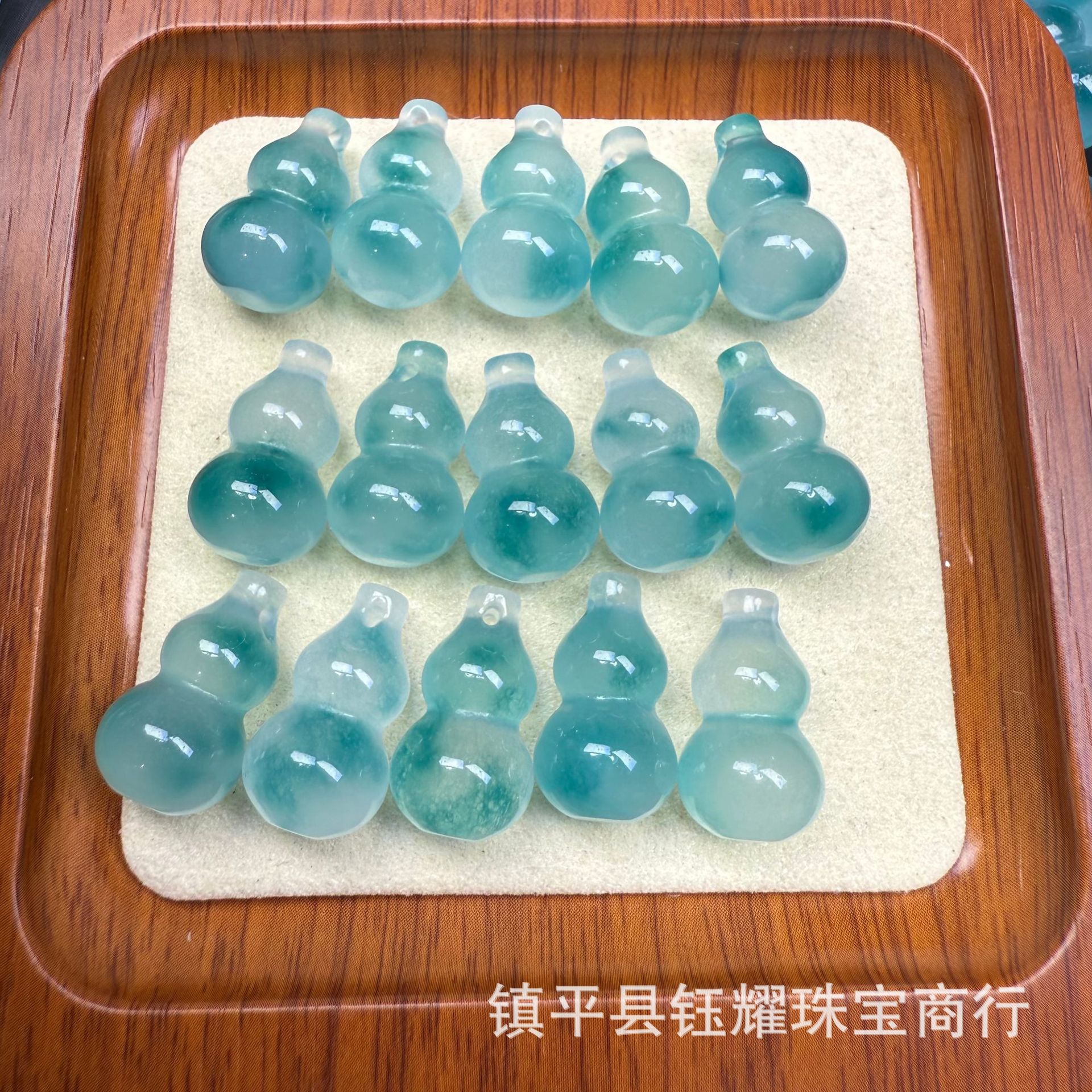 高冰巴山料翡翠冰种飘蓝花立体葫芦吊坠玉石葫芦挂坠DIY耳环饰品