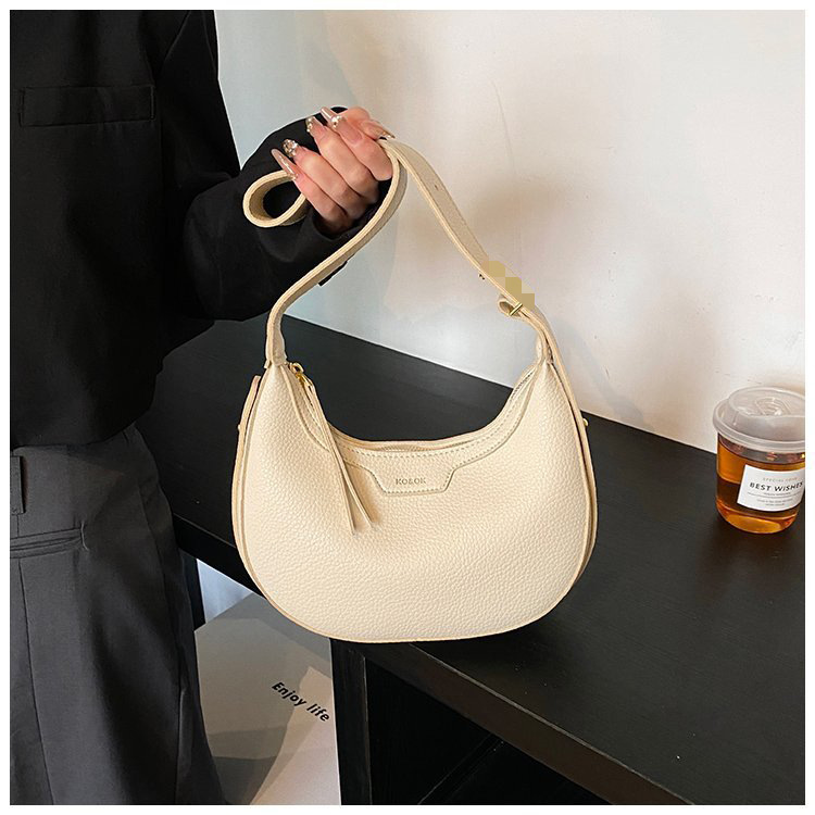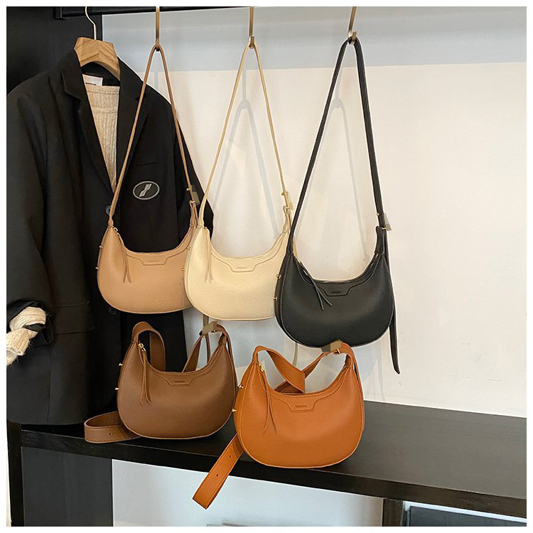 韓国系の高級な質感の包みの女性の2024秋の新商品のファッションの百合のシンプルな肩の脇の下の包みの新月の包みの女性