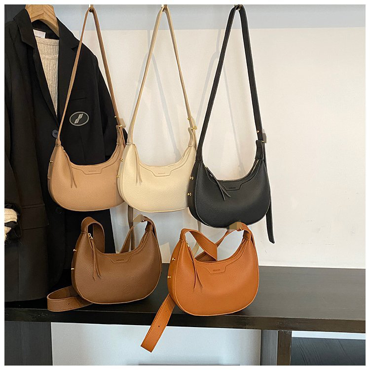 国境を越えた小さな人々のハンドバッグの女性2025の新しいモデルは、シングル肩の斜めショルダーの腋の下にカジュアルなファッションの三日月バッグを包んでいます