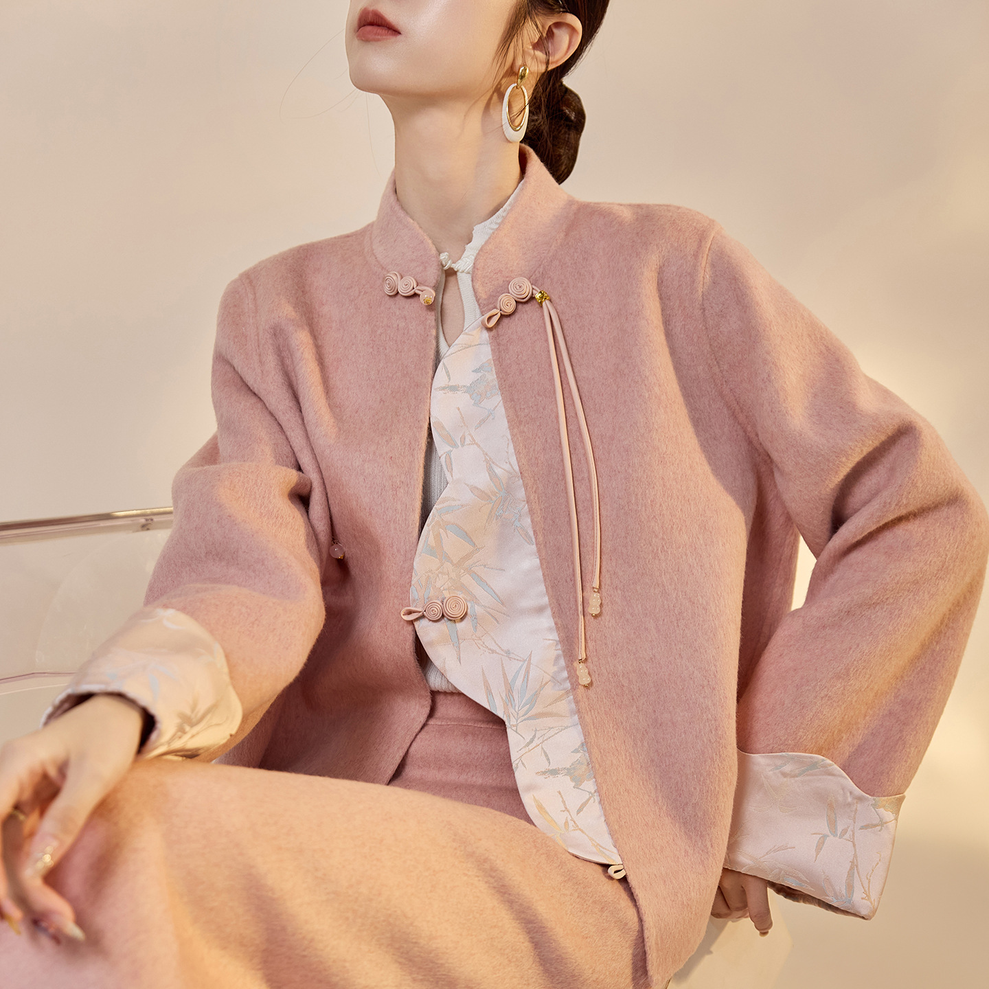 冬季高端国风古韵设计感盘扣新款毛呢羊毛外套半裙两件套女 NX015