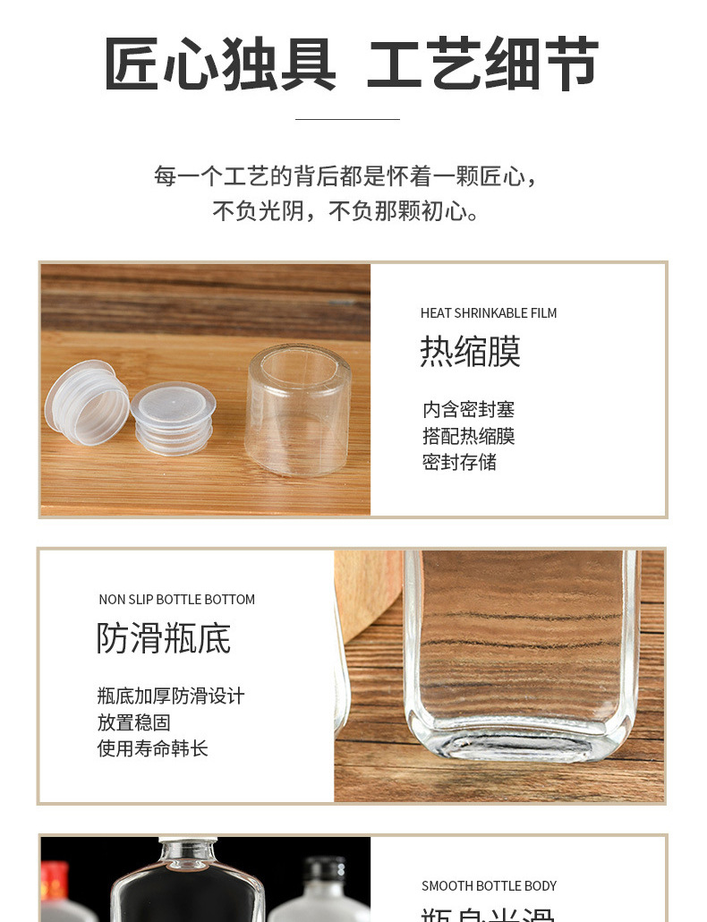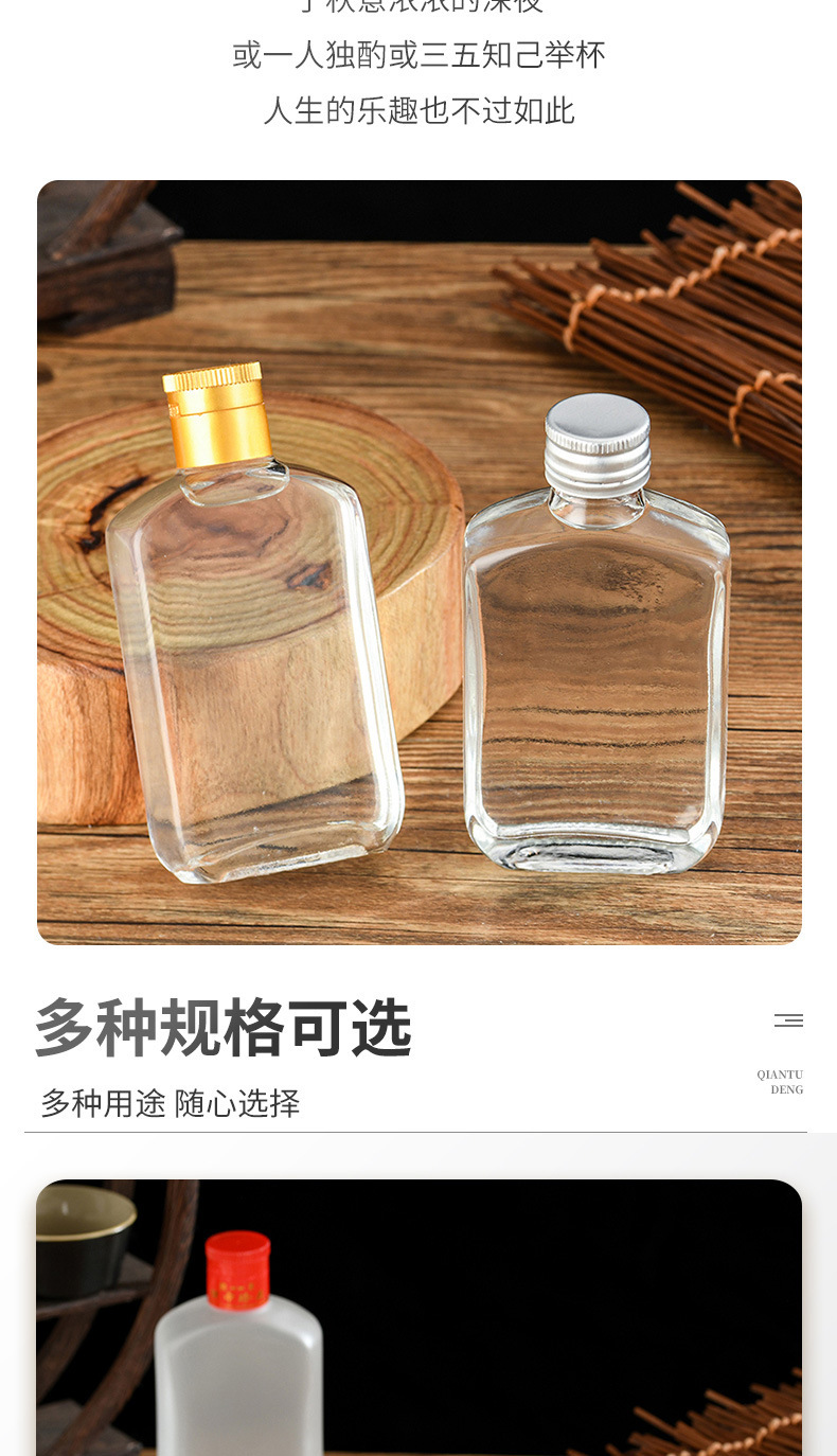 125ml劲酒二两半装玻璃二锅头白酒瓶养生酒保健酒扁瓶小药酒瓶