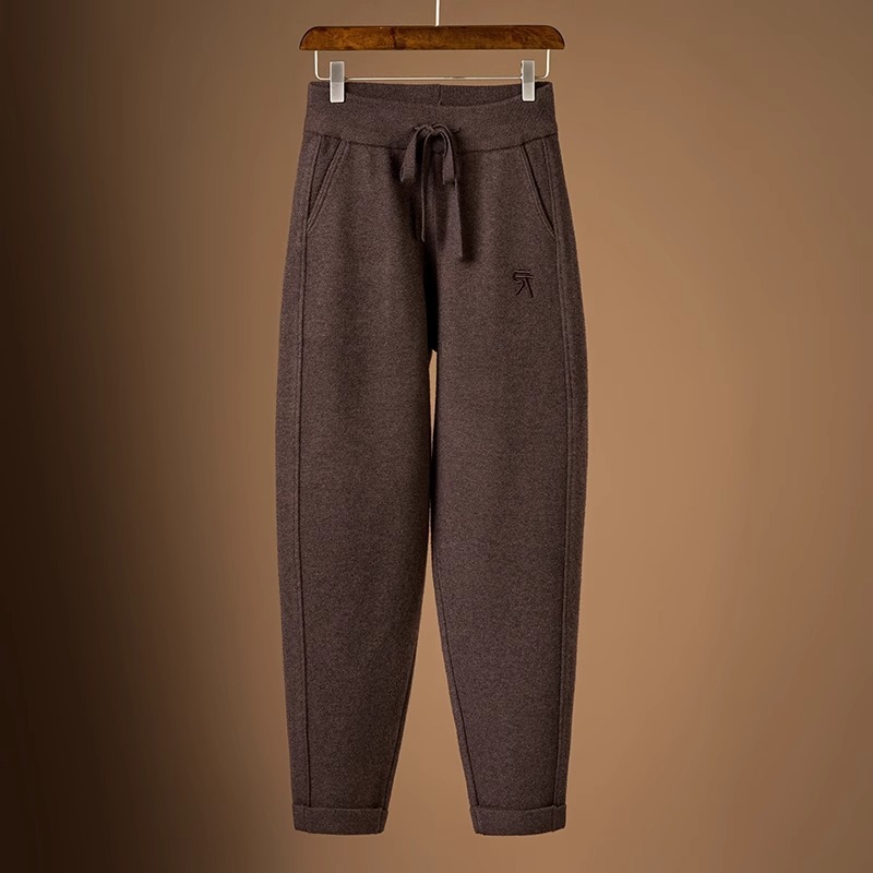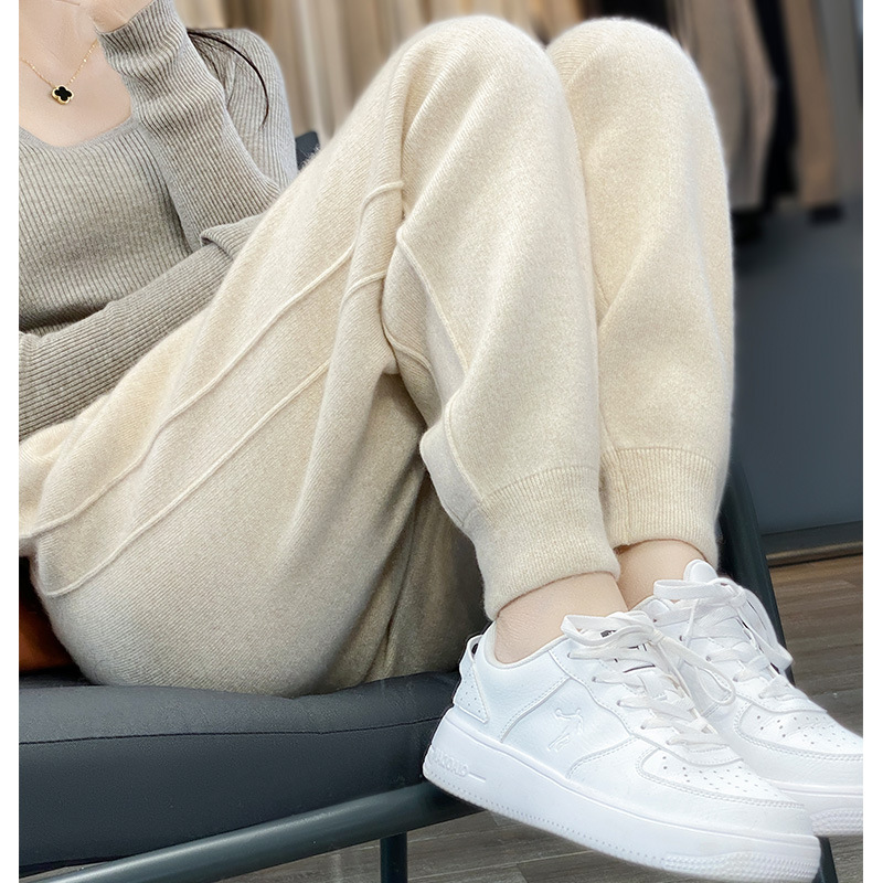 100%纯羊毛裤女外穿秋冬针织空气层加厚针织小脚裤宽松哈伦裤萝卜