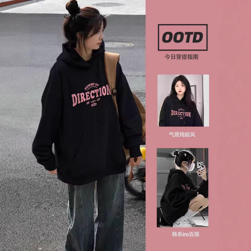 怠惰な風の重いポンドの黒色の帽子の衛衣の女性の春と秋の冬のベルベットは厚くてゆったりしています。