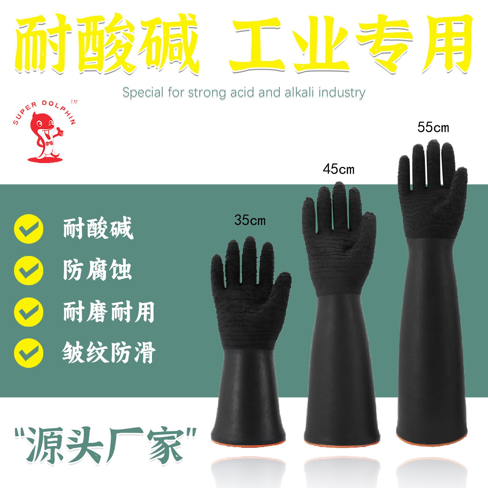 35CM皱纹橡胶工业耐酸碱手套工厂化工劳保防护防腐蚀加厚耐磨乳胶
