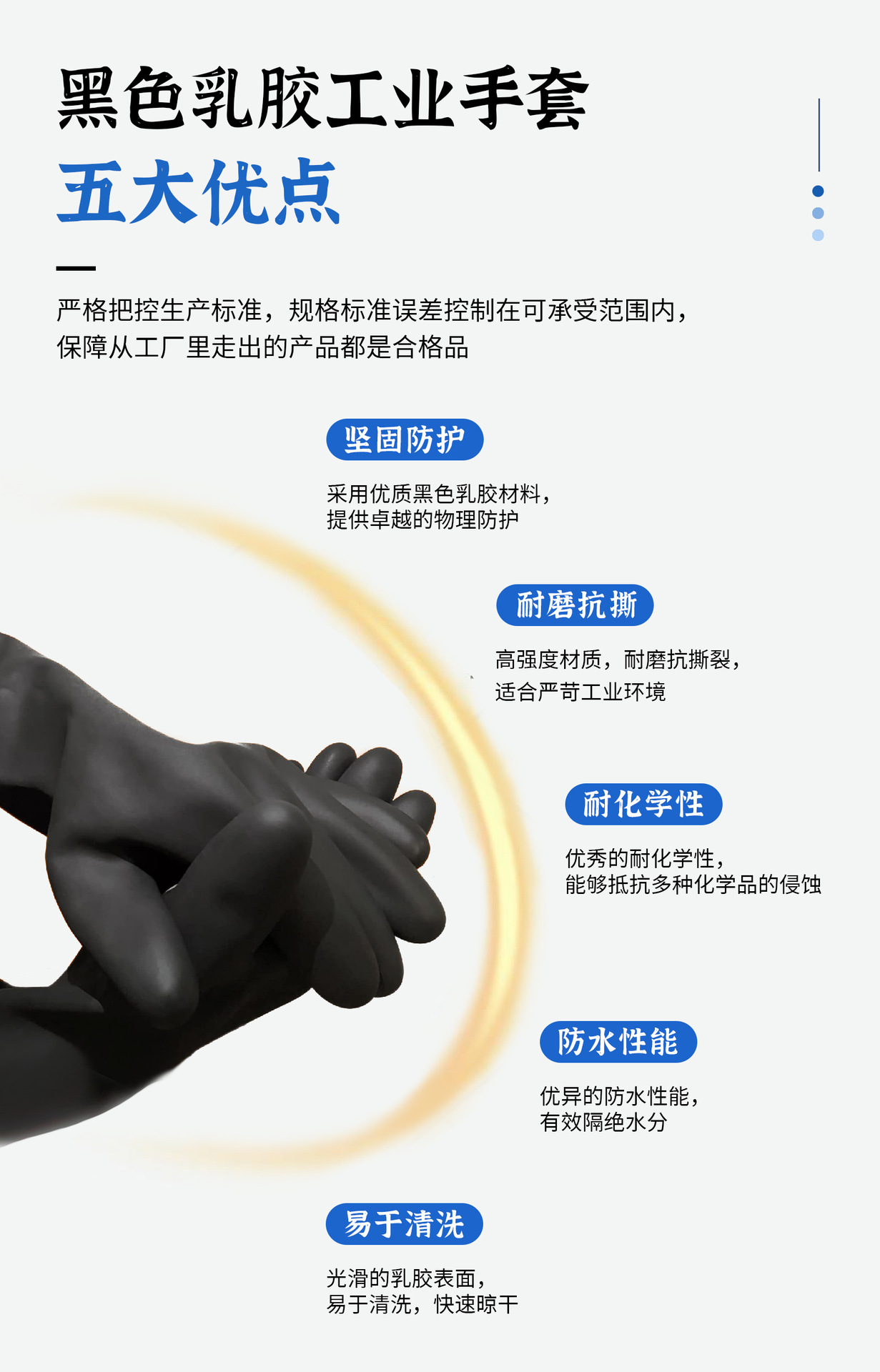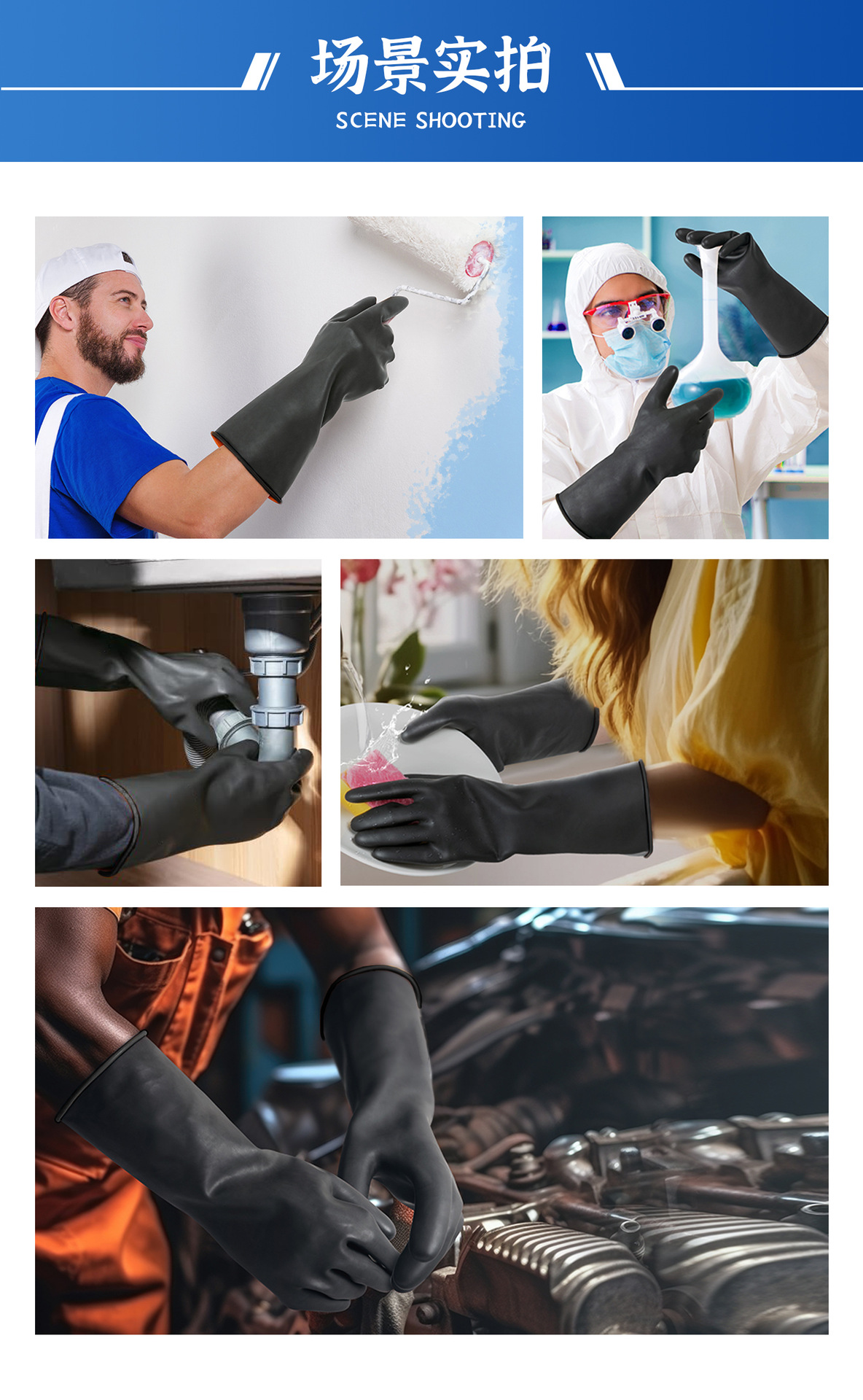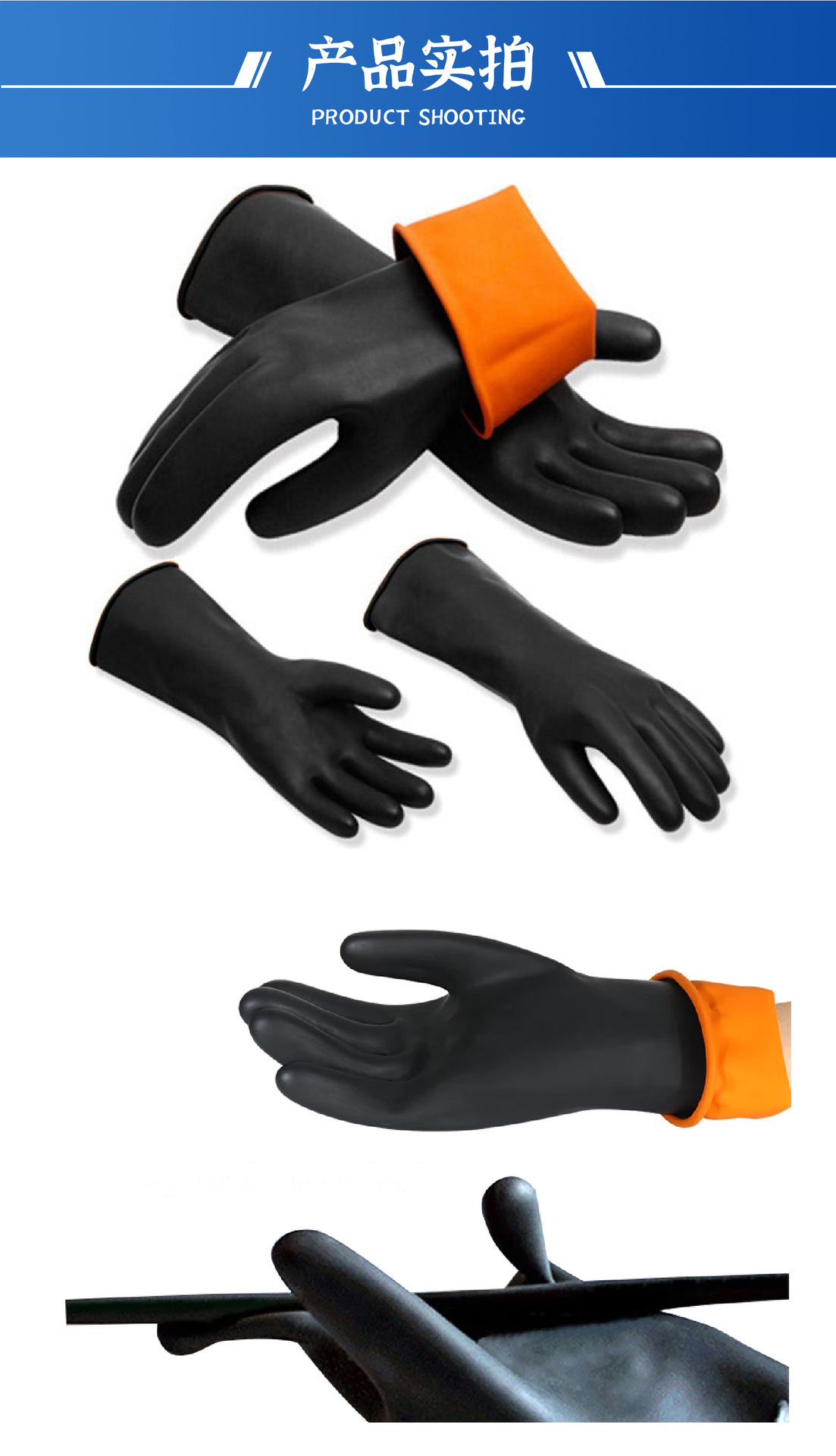 工業防化酸アルカリラテックス手袋防食黒色延長安全防護ゴム手袋卸売り