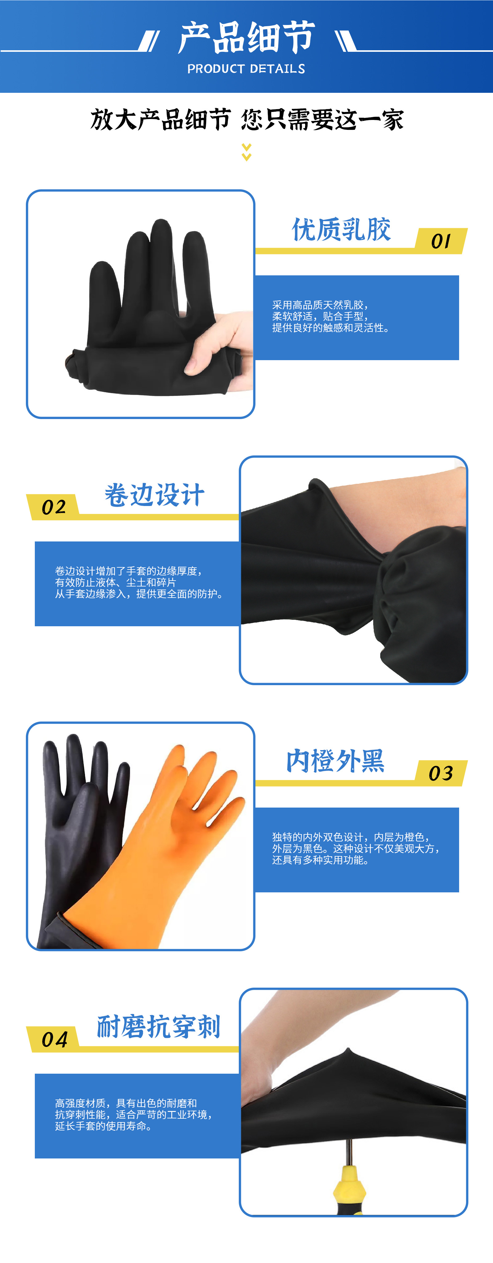 工場卸売り酸アルカリラテックス手袋黒色二重外黒内オレンジゴム工業化学労働保護手袋