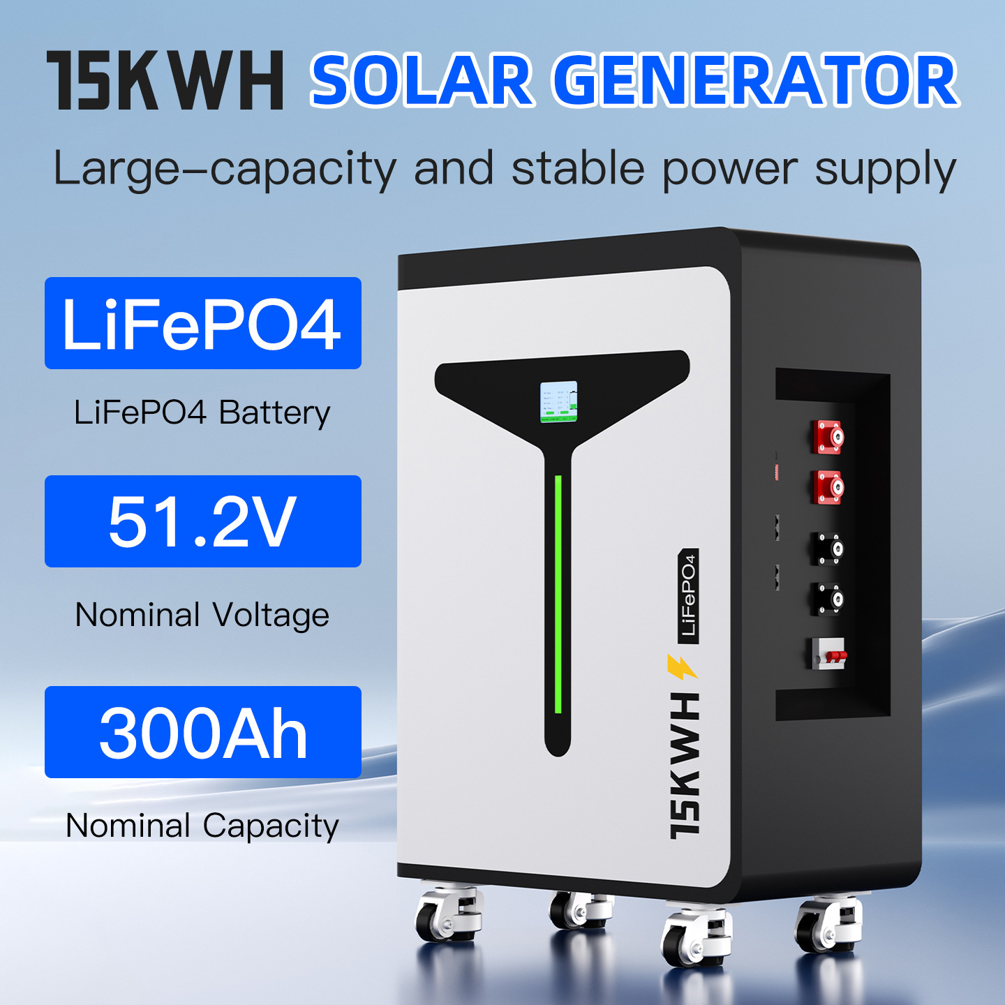 15KWH 磷酸铁锂电池LiFePO4 Battery太阳能发电机逆变器组合
