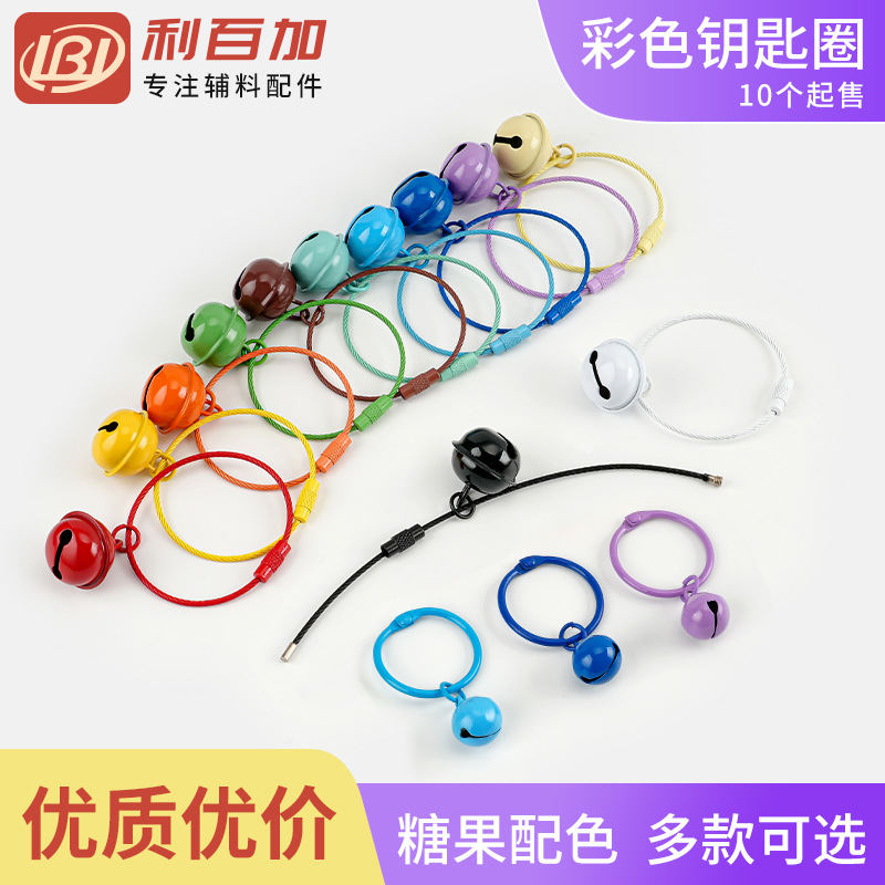 DIYカラフルな鈴、ビーズアクセサリー、キーホルダー、塗装済みワイヤーロープ、ステンレス製キーリング、人形飾り、ペンダント