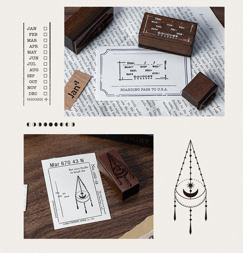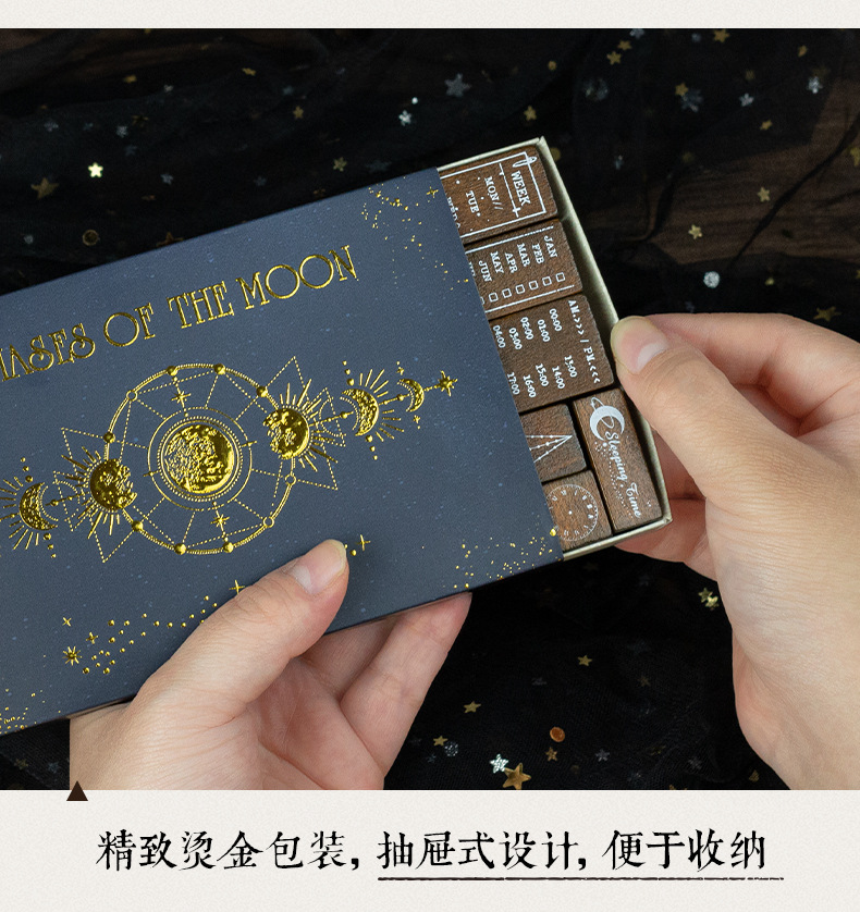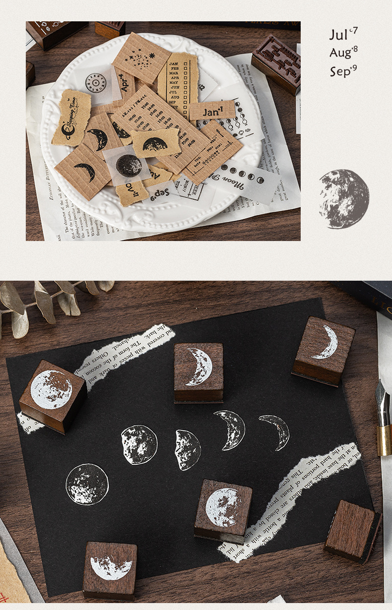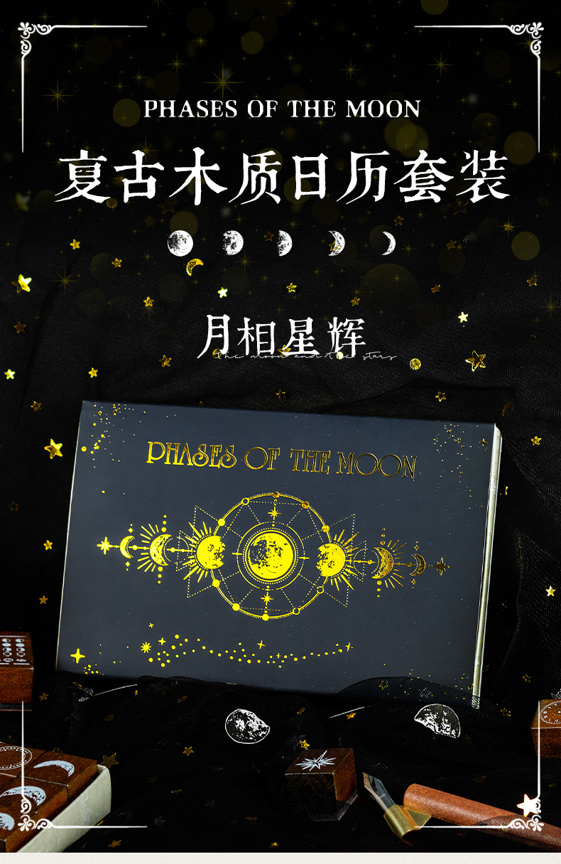 月相星輝木製印鑑セット万年暦月手帳印鑑30枚クロスボーダー月相印鑑