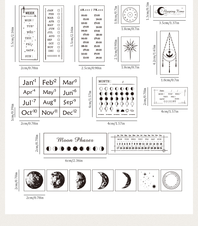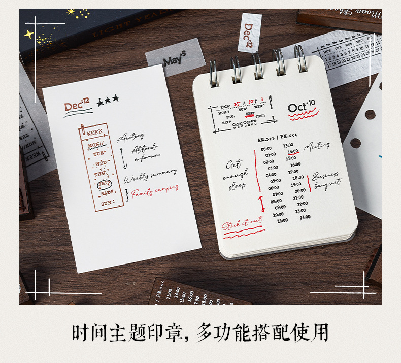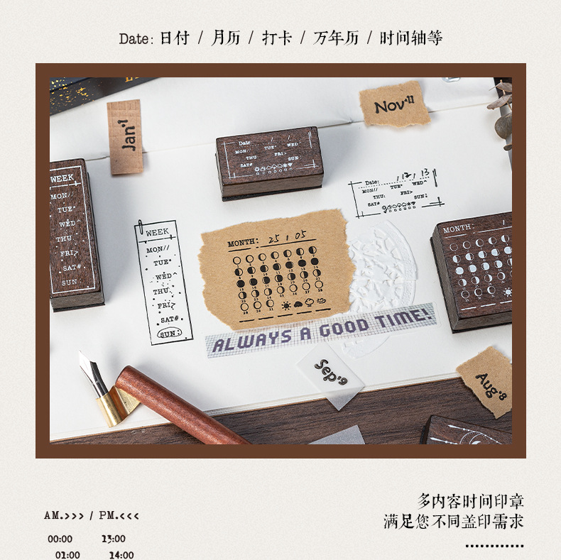 月次デジタル手帳木製印鑑セット日付計画時間装飾プリント素材スタンプ