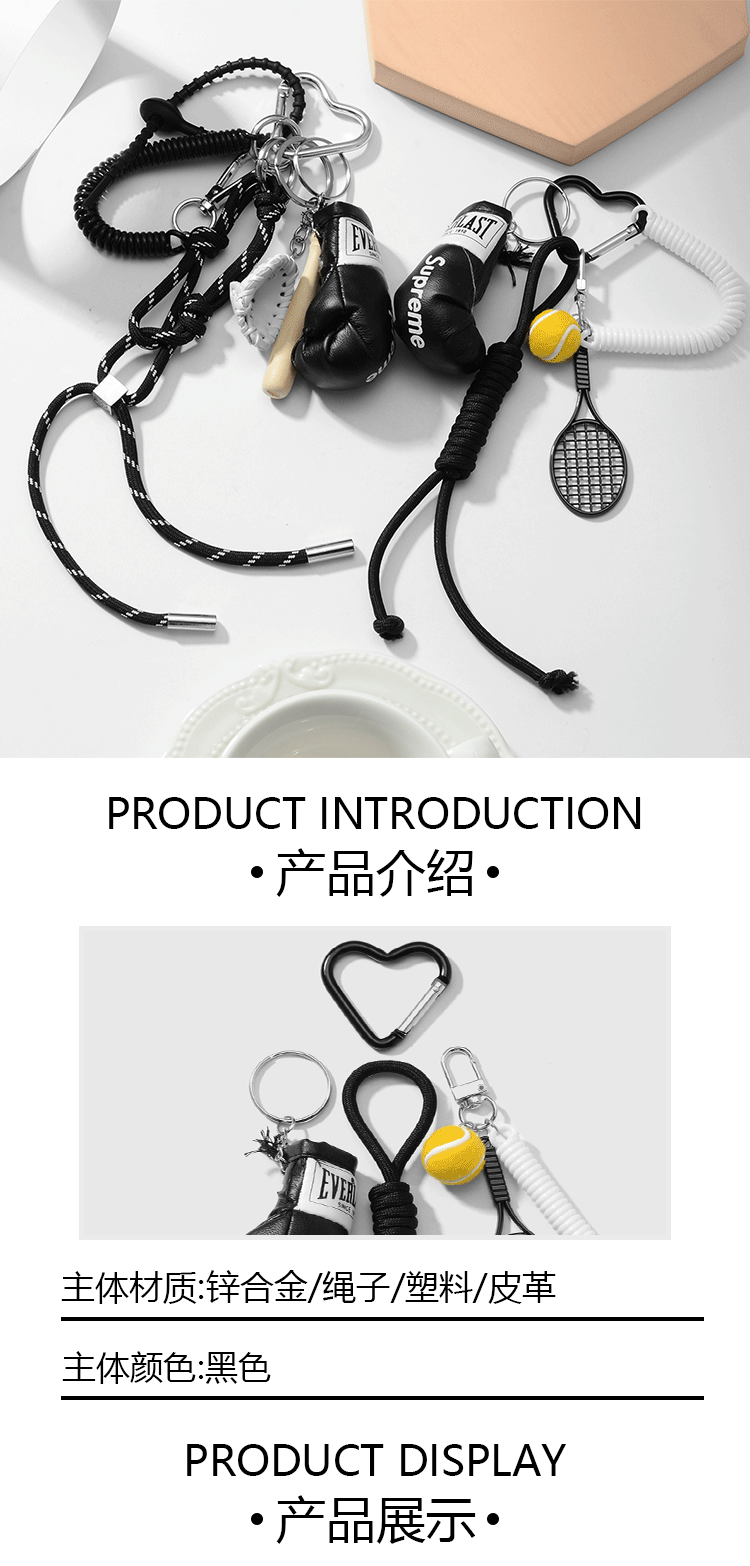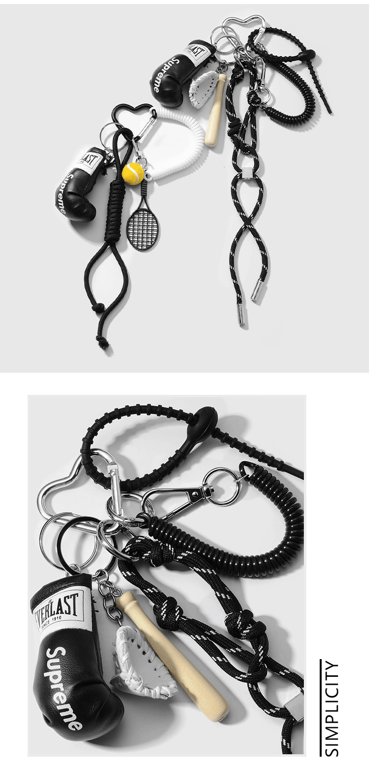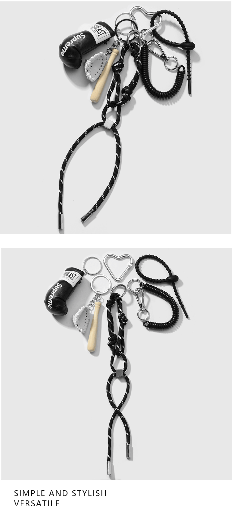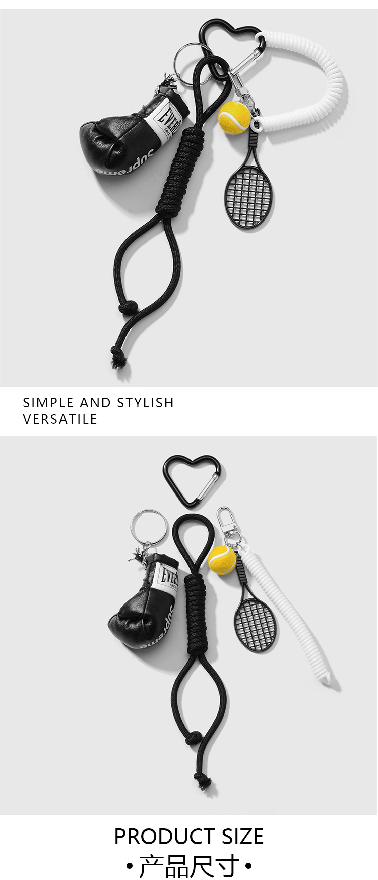 越境爆金個性ファッション暗黒風黒ボクシング手袋miniバスケットボール心登山ロープDIYキーホルダー