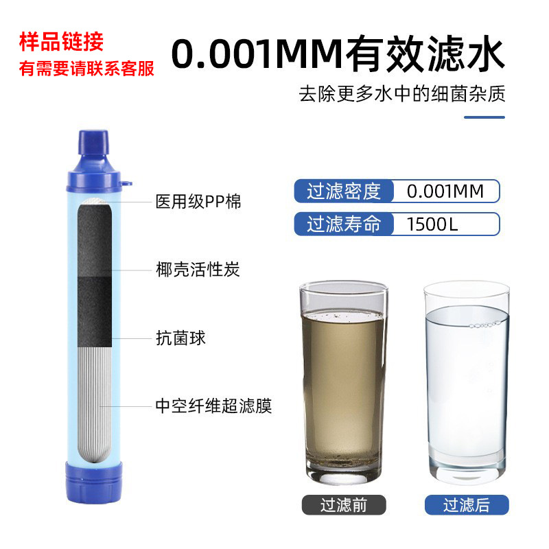 跨境便携户外净水器野外应急单兵荒野吸管户外露营过滤直饮滤水器