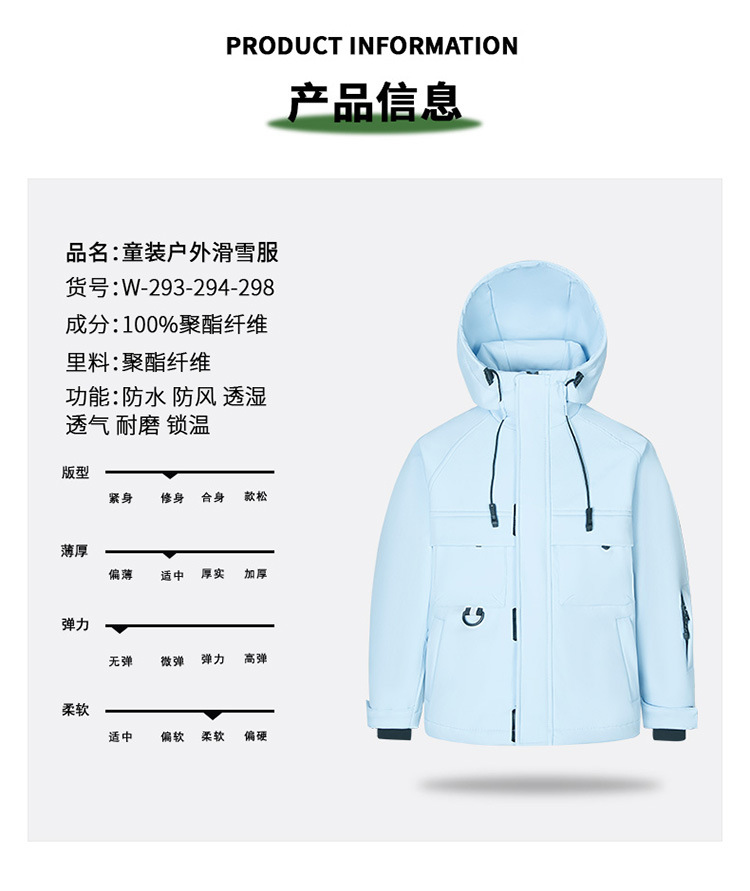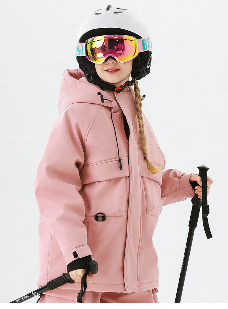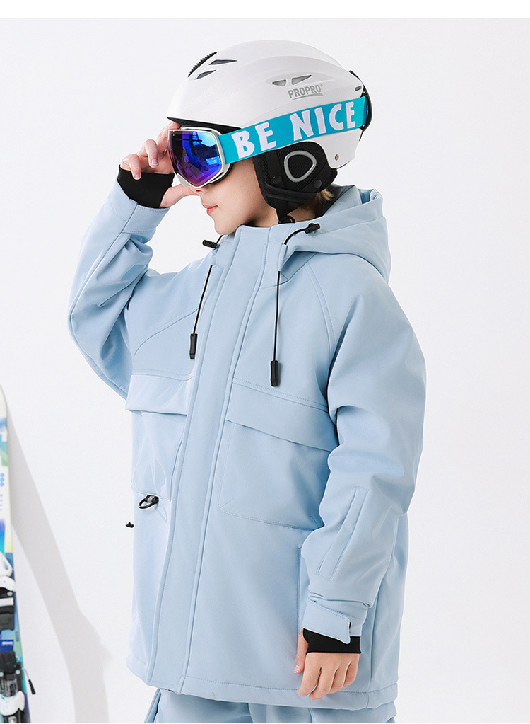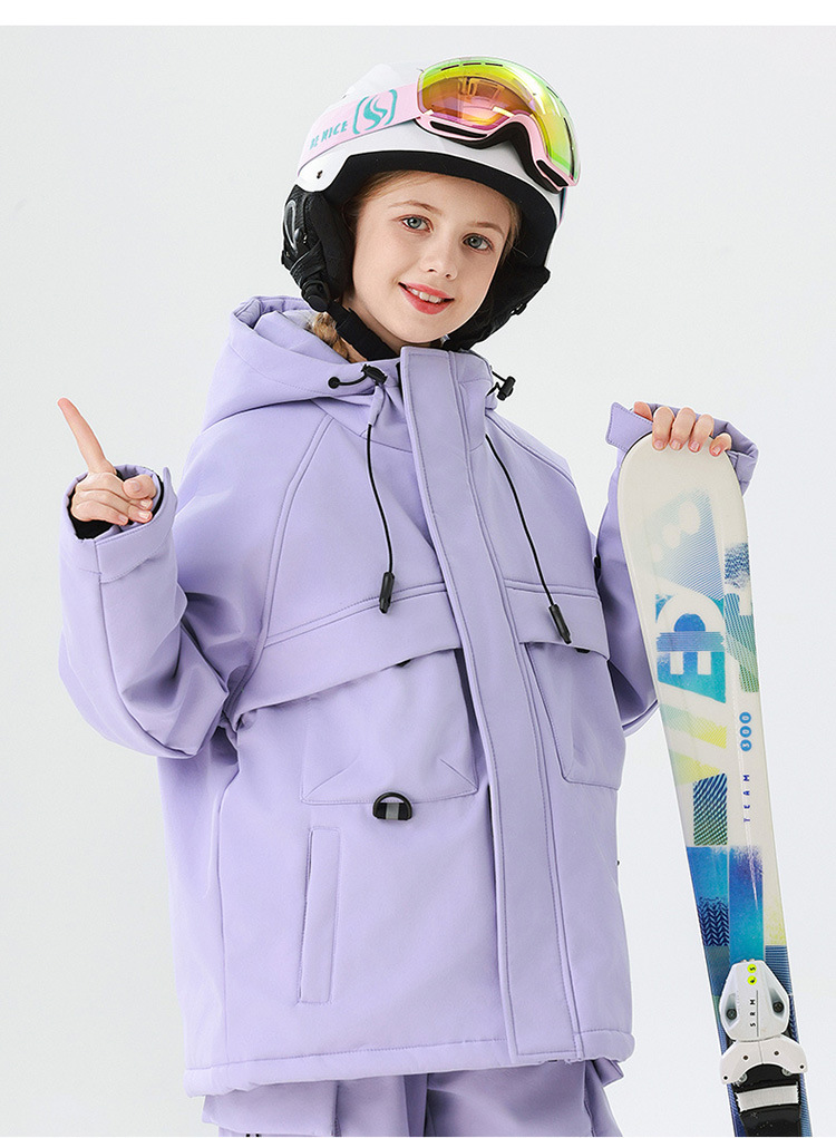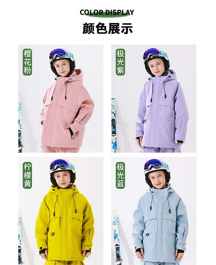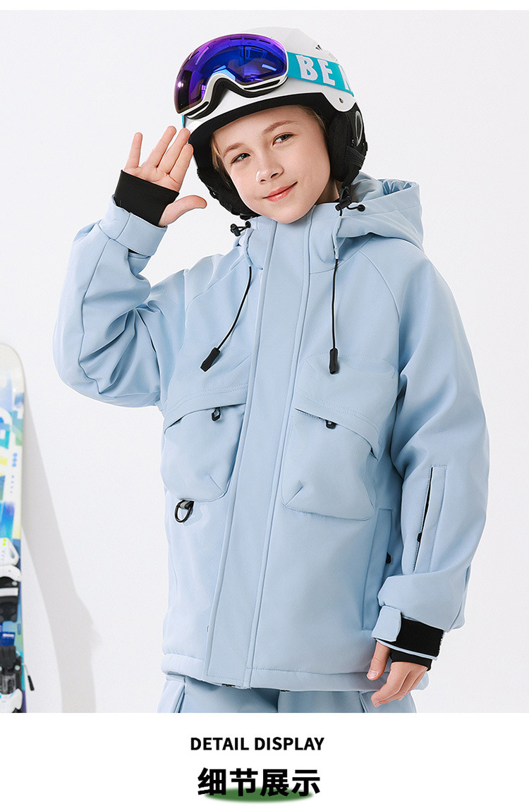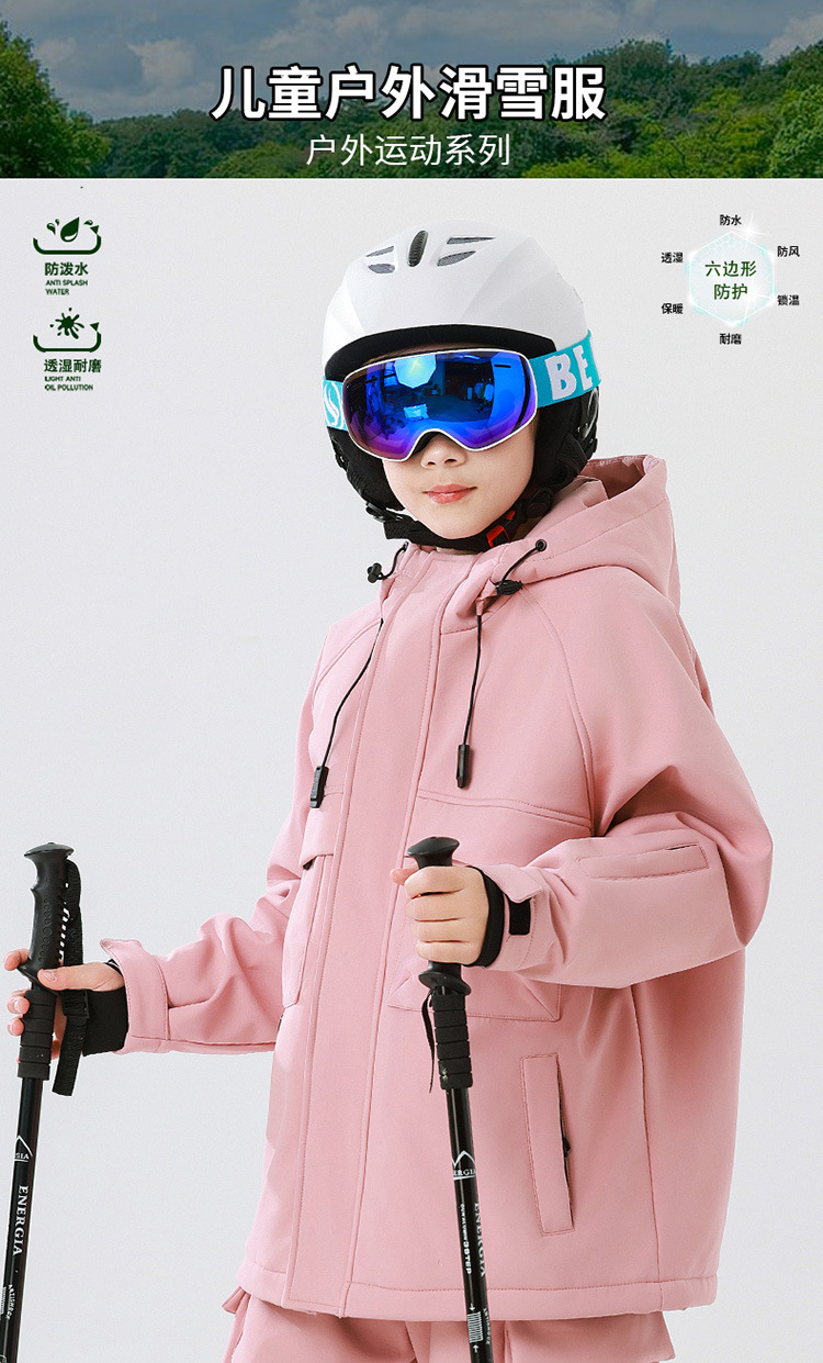 男女児童単双板軟殻児童スキー服保温防水コート屋外装備グラフェン厚手綿入れ