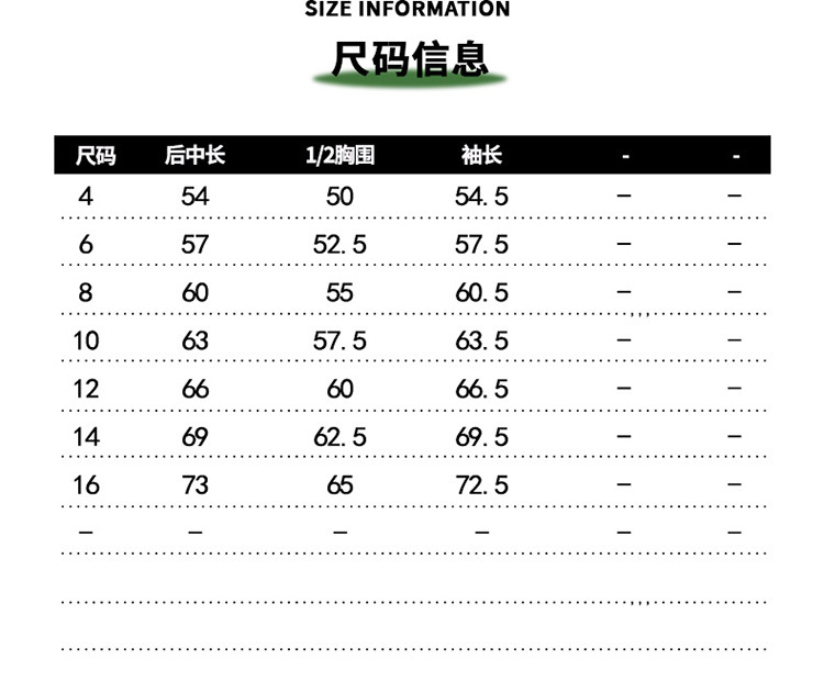 サイズ 4#--100CM,6#--110CM,8--120CM,10#--130CM,12#--140CM,14#--150CM,16#--160CM