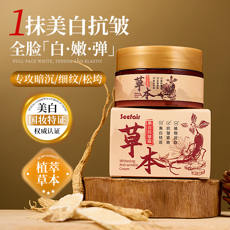 电商爆款 茜妃草本美白抗皱霜补水保湿滋润淡斑淡纹美白祛斑面霜