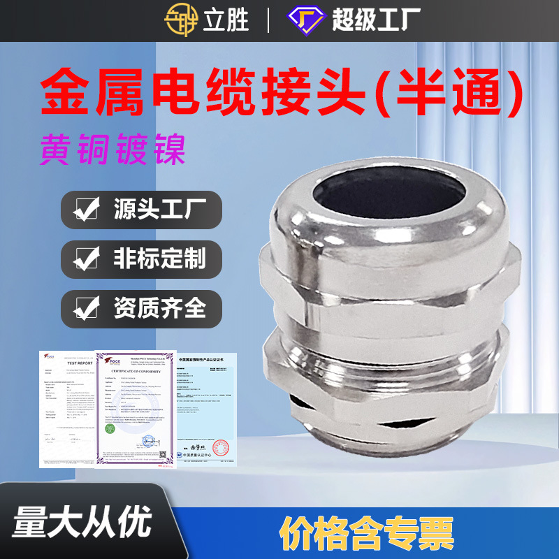 新品黄銅メッキニッケルメッキメタルケーブル防水ジョイントPGグランドヘッドM固定破締めケーブルヘッド304ステンレス