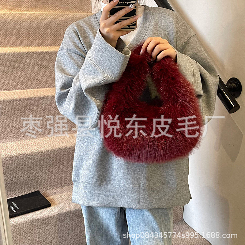 新款外贸仿狐狸毛小包毛绒腋下单肩包手拎收纳包秋冬女士手提包包